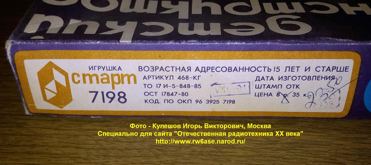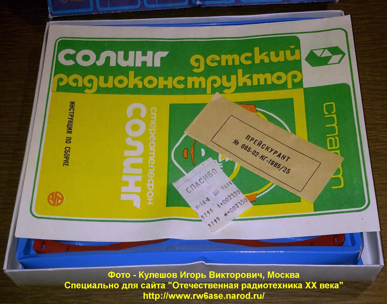 Детский радиоконструктор *Старт-7198* (стереотелефоны *Солинг*) выпускался с 1985 года в Киеве (абонементный ящик 649/01). Радиоконструктор позволяет собрать головные стереофонические телефоны. Диапазон рабочих частот - 50...12500 Гц. Номинальная подводимая мощность 1 мВт, максимальная 100 мВт.