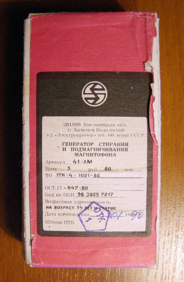 Радиоконструктор *Старт-7217* (Генератор стирания и подмагничивания магнитофона) с 1988 года выпускал Каменец-Подольский завод *Электроприбор*. Радиоконструктор **Старт-7217** предназначен для детей старшего школьного возраста и радиолюбителей любой квалификации. Предлагаемый радиоконструктор позволяет собрать генератор, вырабатывающий ток стирания и подмагничивания для магнитной ленты при записи. Генератор можно применять при изготовлении и модернизации магнитофонов различных классов. При этом, если позволяет лентопротяжный механизм магнитофона достигаются параметры не хуже 1-го класса. Частота тока стирания и подмагничивания 100 кГц. Ток стирания 100 мА. Коэффициент гармоник 0,5%. Напряжение питания (двухполярный источник) 12 В. Потребляемый ток 35 мА. Габариты платы 130х80х40 мм. Масса 120 г.
