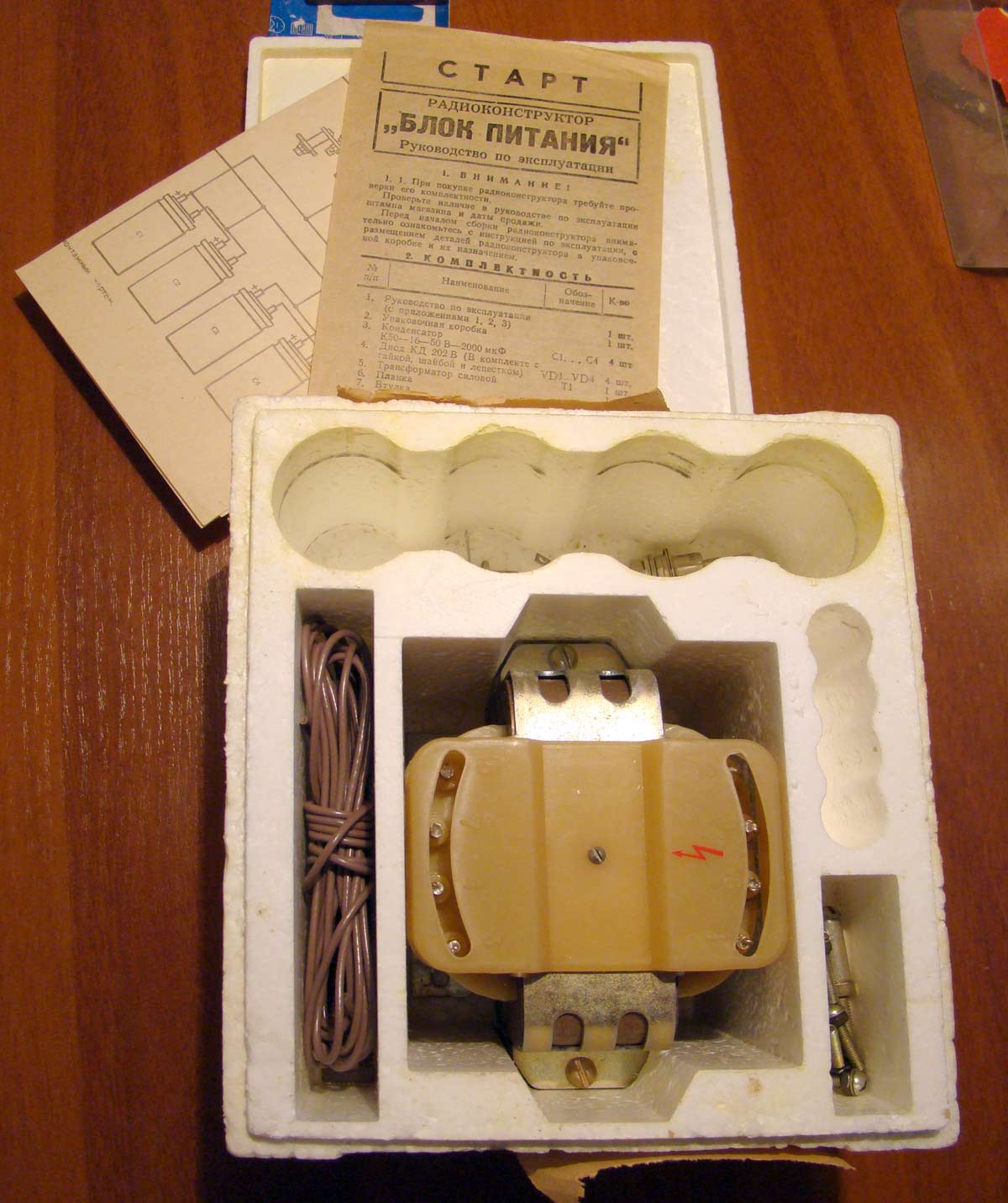 Радиоконструктор *Старт-7219* (Блок питания) с 1988 года выпускал Каменец-Подольский завод *Электроприбор*. Радиоконструктор **Старт-7219** позволяет собрать стабилизированный блок питания, предназначенный для схем одно и двухполярного питания, в первую очередь для усилителей мощности низкой частоты. Мощность трансформатора 70 Вт. Напряжение переменного тока на выходе 2х18 и 2х12 В. Напряжения входа 220 В (сеть переменного тока). Величина выпрямленного напряжения 2х25 и 2х12 В. Максимальный ток нагрузки соответственно 1,3 и 0,1 А. Габаритные размеры блока питания 150х162х110 мм. Масса 1,5 кг. Предохранители в набор не входят.