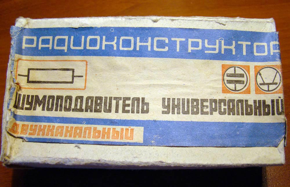 Радиоконструктор *Шумоподавитель универсальный двухканалный* с 1986 года выпускал Каменец-Подольский завод *Электроприбор*. Конструктор позволяет из радиодеталей, на печатной плате собрать универсальный двухканальный шумоподавитель, предназначенный для работы в трактах высококачественных стереофонических звуковоспроизводящих устройств. Рабочий диапазон звуковых частот 20...20000 Гц. Номинальное входное напряжение 0,25 В. Напряжение питания - 12...15 В. Входное сопротивление - 30 кОм. Коэффициент передачи - 1. Коэффициент гармоник на выходе 0,5%. Подавление шума 10 дБ. Переходное затухание между каналами 40 дБ. Потребляемый ток 20 мА. Габариты платы 95х170х50 мм. Вес 150 гр.