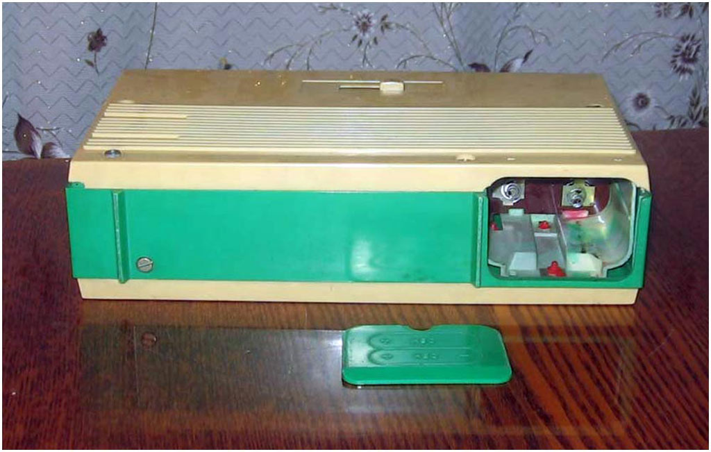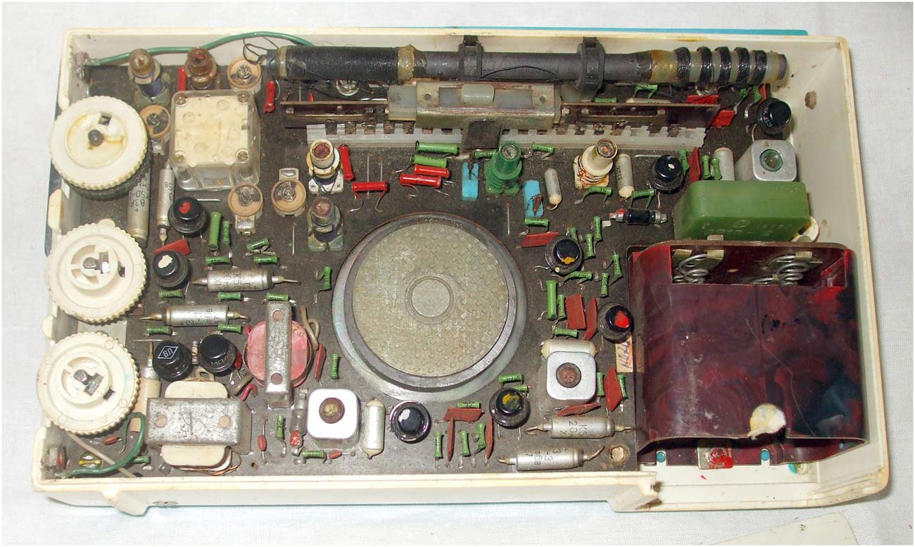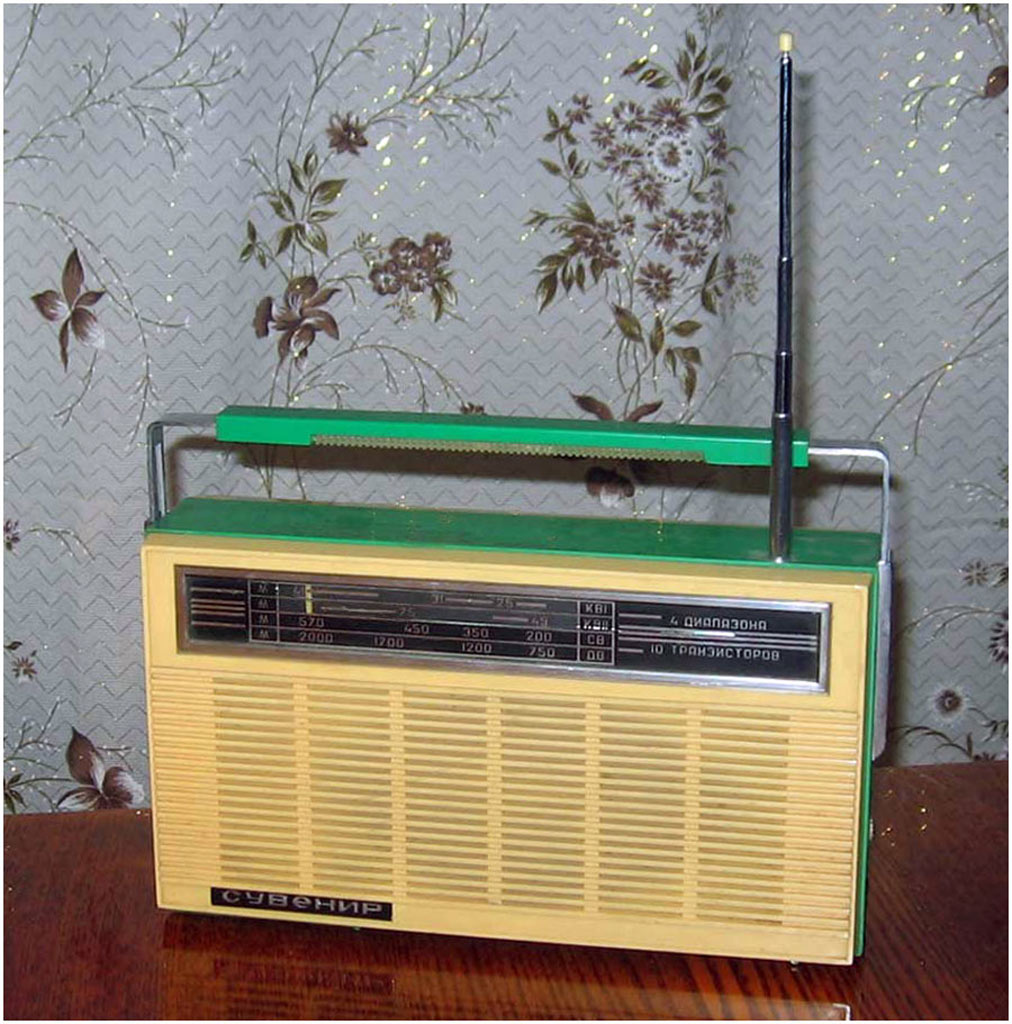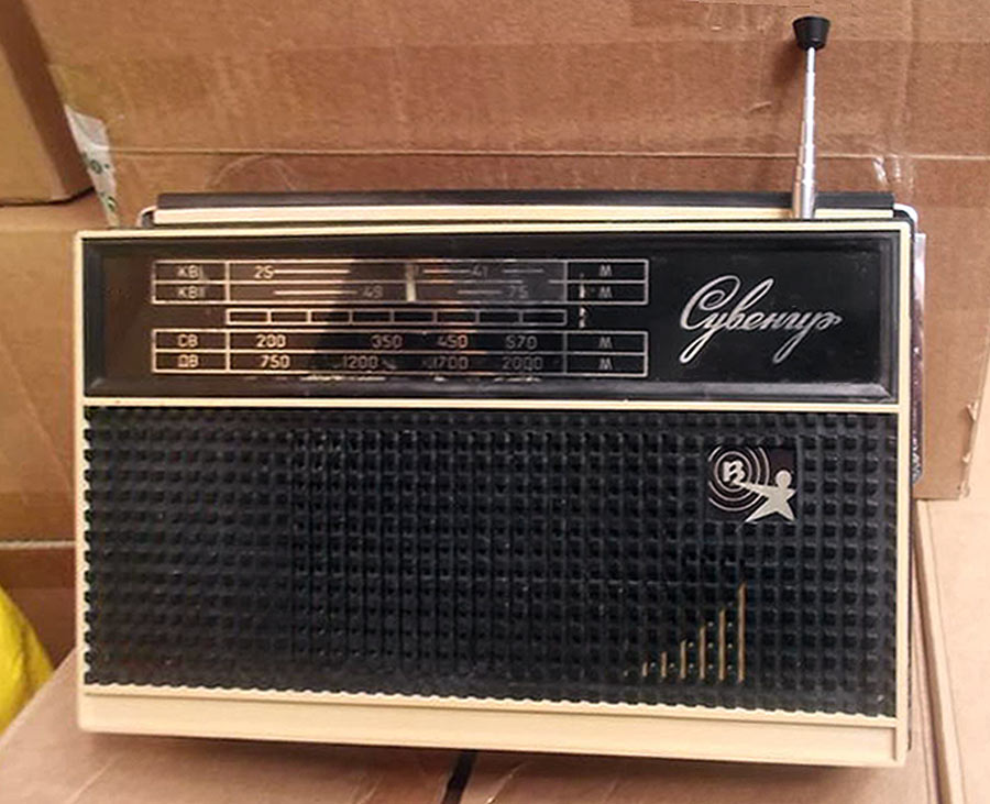 Портативный радиоприёмник 2-го класса *Сувенир* с 1965 года выпускал Воронежский радиозавод. Супергетеродин на 10-ти транзисторах и 2 диодах. Приёмник предназначен для работы в ДВ, СВ и 2 полу-растянутых КВ поддиапазонах. В диапазонах ДВ и СВ приём осуществляется на магнитную антенну, КВ на телескопическую. Чувствительность в ДВ - 2,0 мВ/м, СВ - 1,0 мВ/м, KB - 100 мкВ. Избирательность по соседнему каналу при расстройке на ±10 кГц - 40 дБ. Полоса воспроизводимых звуковых частот - 200...4000 Гц. Номинальная выходная мощность - 150 мВт. Ток покоя 6 мА, при номинальной мощности 50 мА. Питание от двух батарей КБС-Л-0,5. Работоспособность приёмника сохраняется при снижении напряжения до 4 В. Футляр изготовлен из цветной ударопрочной пластмассы с ручкой переноски. К приёмнику можно подключить антенну, заземление и головные телефоны. Габариты РП 260х160х67 мм. Вес с батареями 1,6 кг. РП имел несколько вариантов оформления.