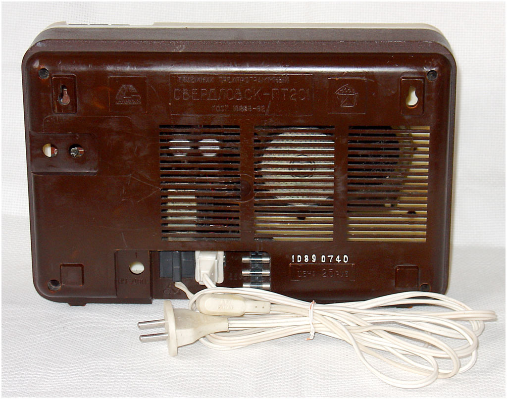 Приёмник трёхпрограммный *Свердловск-201* с 1986 года выпускал Свердловский завод радиоаппаратуры. ПТ **Свердловск-201**, (с 1987 года **Свердловск ПТ-201**) - предназначен для воспроизведения программ, передаваемых по сети трёхпрограммного проводного радиовещания. Он рассчитан на проводную уплотнённую радиосеть с напряжением 30 в. Питание ПТ производится от электросети в 220 вольт.Для прослушивания первой, основной программы ПТ может использован и как обычная радиоточка без включения в электрическую сеть. Диапазон звуковых частот на основном канале с усилением или без 100...10000 Гц, двух ВЧ каналов 100...6300 Гц. Частоты ВЧ каналов - 78 и 120 кГц.