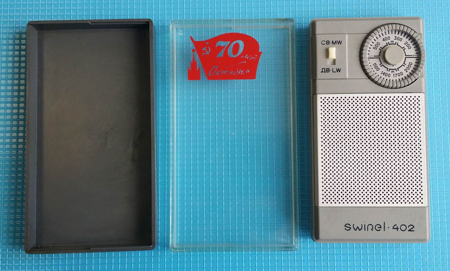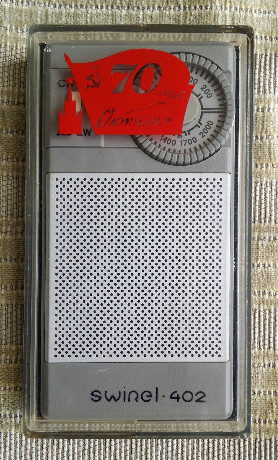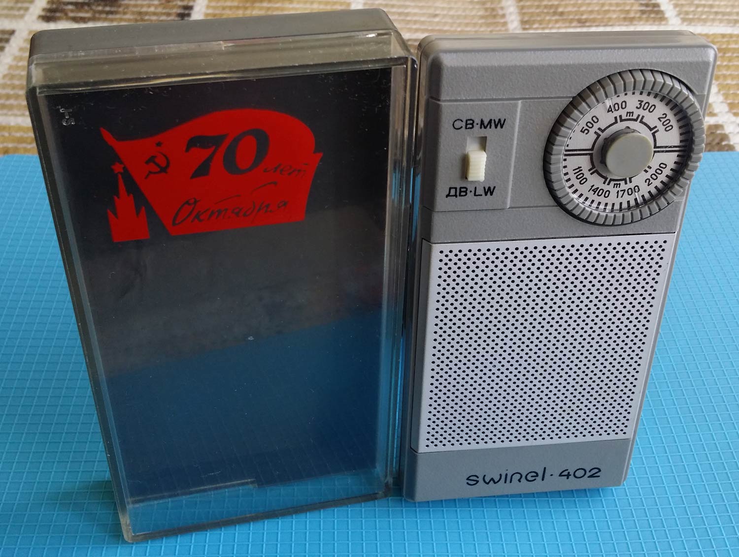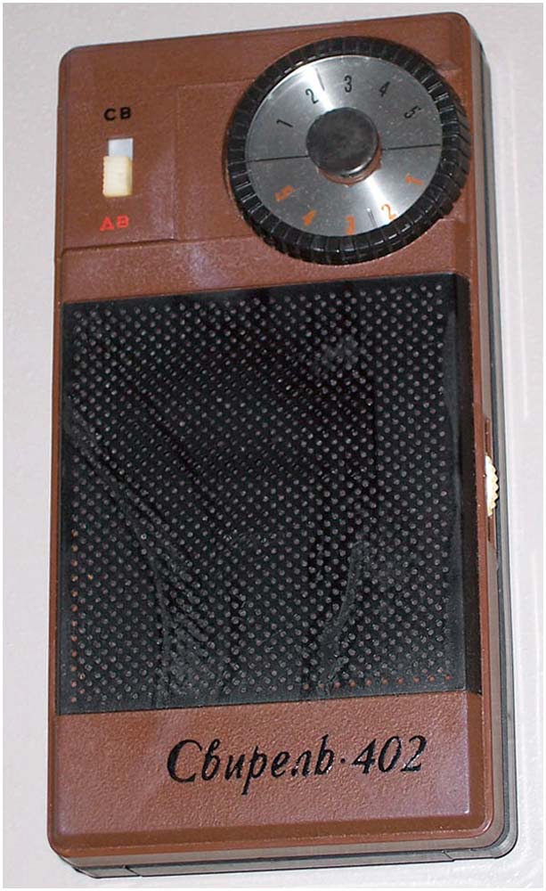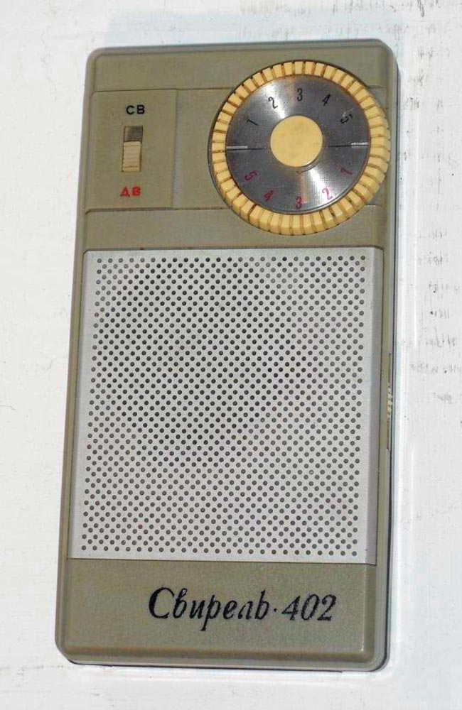 Малогабаритные радиоприёмники *Свирель-2*, *Свирель-402* и *Свирель РП-402-1* выпускал с 1983, 1989 и 1991 года Оршанский завод *Красный Октябрь*. Приёмники **Свирель-2** (402) предназначены для приёма радиостанций в диапазоне ДВ и СВ на внутреннюю магнитную антенну. Питание любого приёмника осуществляется от трех элементов типа 316. Продолжительность работы любого из приёмников, при питании от элементов типа 316 составляет 40...45 часов, при средней громкости. Радиоприёмник **Свирель-2** стал дальнейшей модернизацией серийного однодиапазонного приёмника **Свирель**, выпускаемого с 1981 года. Приёмник **Свирель-402** заменил **Свирель-2**, а приёмник **Свирель РП-402** выпускаемый с 1986 года это тот же радиоприёмник **Свирель-402**, но с приставкой РП по новому ГОСТ-у. Приёмник **Свирель РП-402-1** это модернизация предыдущих моделей. Диапазоны: ДВ - 148,0...285,0 кГц, СВ - 525,0...1607,0 кГц. Чувствительность в диапазоне ДВ - 2,5 мВ/м, СВ - 1,5 мВ/м. Селективность 20 дБ. Максимальная выходная мощность 100 мВт. Диапазон частот по звуковому давлению 450...3150 Гц. Радиоприёмники выпускались и на экспорт.