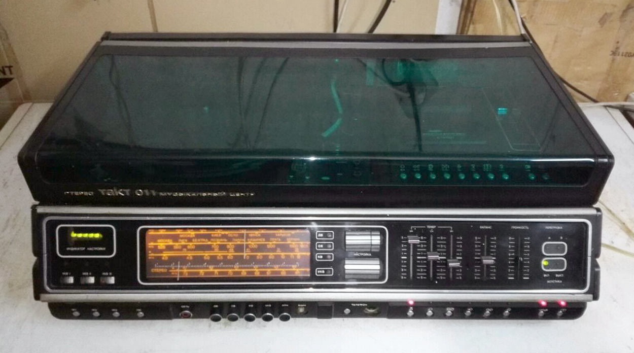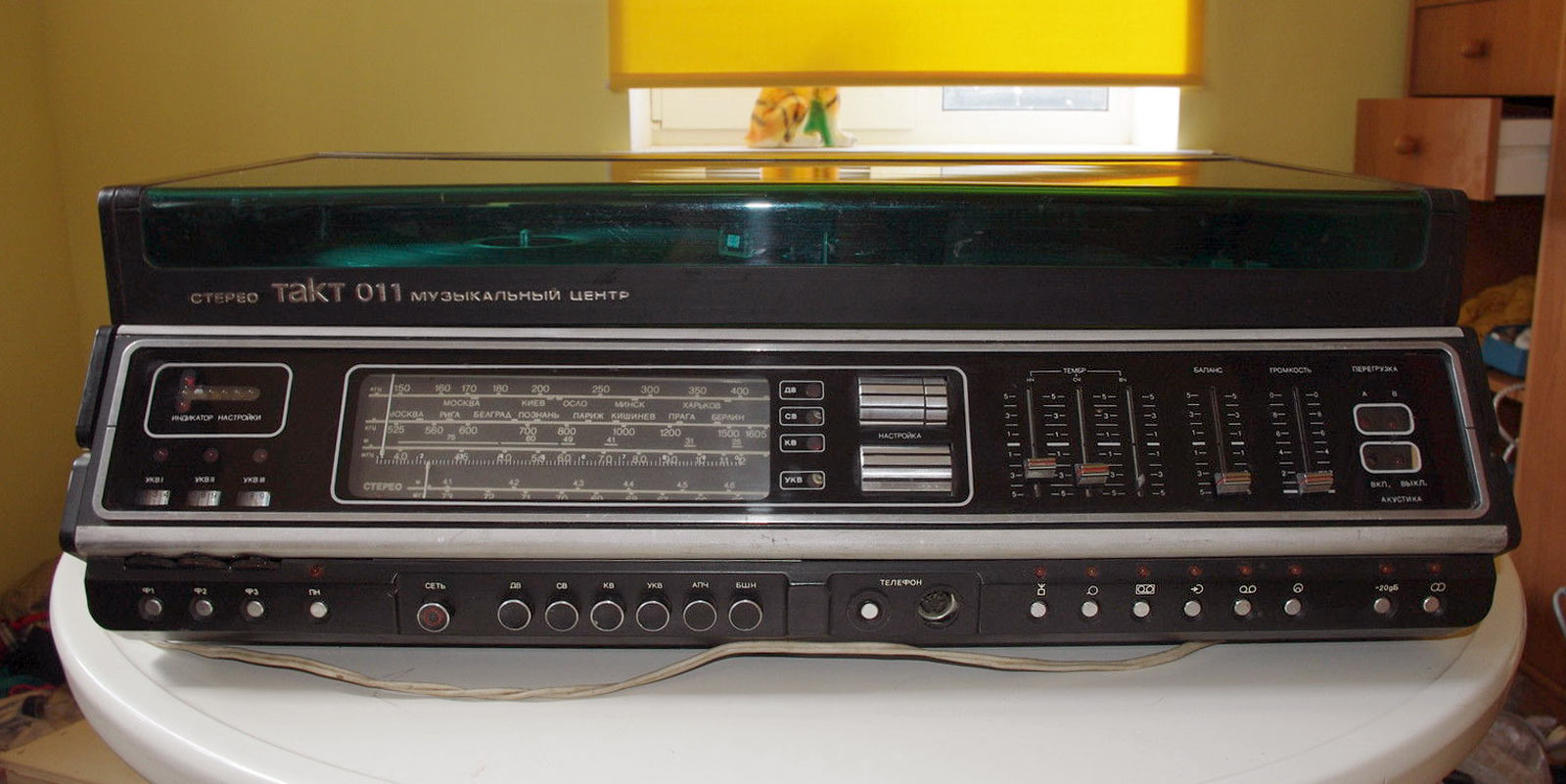 Стереофонический музыкальный центр *Такт-011-стерео* с начала 1985 года выпускал Запорожский завод *Радиоприбор*. МЦ создан на базе МЦ **Такт-001-стерео** и мало от него отличается. Так в новом МЦ стрелочные индикаторы заменены на светодиодные, режимы работы ЛПМ теперь так же отражаются светодиодами, изменено расположение регуляторов уровня записи, добавлен механческий счётчик расхода ленты, убран выброс кассеты, теперь это делается вручную. Так же имеются и другие незначительные изменения во внешнем оформлении, а в общем это тот же МЦ *Такт-001С*, даже сзади на крышке это отражено, как и прежняя, на мой взгляд ну очень завышенная цена в 1980 рублей, в 1980 году когда был выпущен базовый МЦ это ещё как-то оправдывалось, Олимпиада-80 и год 1980, всё соответствовало цене, но в 1985 году... Впрочем по этой или по другим причинам МЦ *Такт-011С* было выпущено всего около 500 экземпляров.