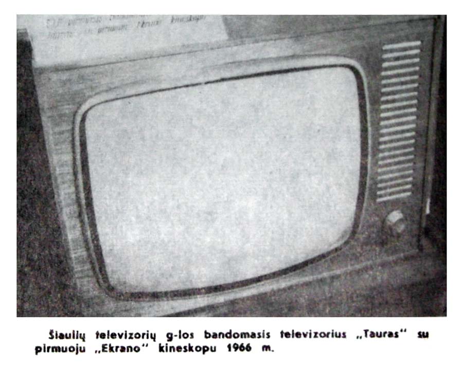 Телевизионный приёмник чёрно-белого изображения *Таурас* с IV-кв 1966 года выпускал Шауляйский телевизионный завод. Телевизор **Таурас** был подготовлен к производству ещё в конце 1966 года, были изготовлено несколько сотен опытных образцов в разных вариантах оформления, однако его массовый выпуск начался только с января 1968 года. **Таурас** - унифицированный телевизионный приемник 2 класса (УНТ-59-II-1) выпускался в настольном и напольном оформлении с различными вариантами отделки корпуса и передней панели. В телевизоре применен взрывозащищенный кинескоп типа 59ЛК2Б или (59ЛК2Б-К,С) с размером экрана по диагонали 59 см и углом отключения электронного луча 110°. Поворачивающееся шасси и рациональное размещение узлов и блоков делает телевизор удобным для осмотра или ремонта. Телевизор обеспечивает: приём передач в любом из 12 каналов; возможность подключения магнитофона для записи звукового сопровождения; прослушивания звукового сопровождения на головные телефоны при отключенных громкоговорителях; возможность регулирования громкости и яркости на расстоянии при помощи проводного пульта ДУ; подключение приставки двух-языкового сопровождения (пульт ДУ и приставка в комплект на входит). Телевизор имеет АПЧГ в блоке переключателя телевизионных каналов, которая обеспечивает переход с одной телевизионной программы на другую без регулировок. АРУ делает изображение устойчивым, при изменении уровней ТВ сигнала. Влияние помех сведено к минимуму системой АПЧ и Ф горизонтальной развертки. Размер изображения 300х485 мм. Чувствительность 50 мкВ. Разрешающая способность 450...500 линий. Номинальная выходная мощность канала звука 1,5 Вт. Телевизор питается от сети переменного тока напряжением 127 или 220 В. Потребляемая мощность 180 вт. Колебания напряжения сети не должны превышать 10% в обе стороны от номинального значения. В телевизоре используются 17 радиоламп, 20 полупроводниковых приборов, 2 громкоговорителя. Габариты телевизора - 700х540х416 мм. Его масса 37 кг. За время выпуска было две незначительных модернизации телевизора.