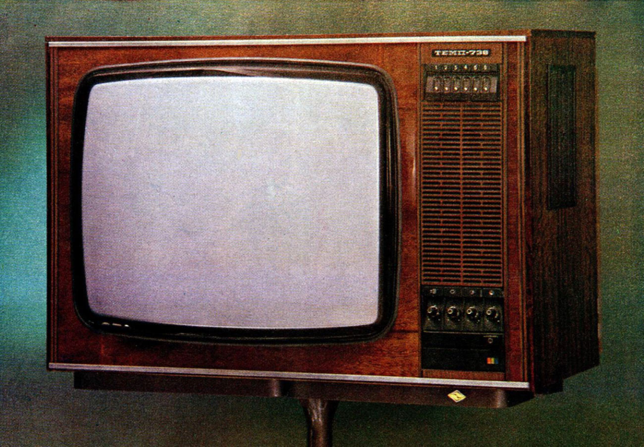 Цветной телевизор *Темп-738* с 1984 года выпускал Московский радиозавод *Темп*. *Темп-738* это унифицированный лампово-полупроводниковый телевизор для приёма программ цветного изображения в диапазоне МВ. Есть возможность установки блока СКД-22, после чего он может работать и в диапазоне ДМВ. Размер изображения 480 х 360 мм. Чувствительность 55 мкВ. Разрешающая способность 450 линий. Номинальная выходная мощность 2,3 Вт. Диапазон воспроизводимых частот 80...12500 Гц. Потребляемая мощность 250 Вт. Габариты модели 790 х 550 х 540 мм. Вес 60 кг.