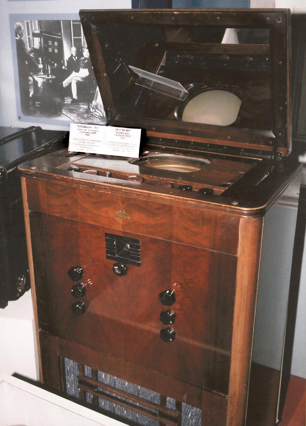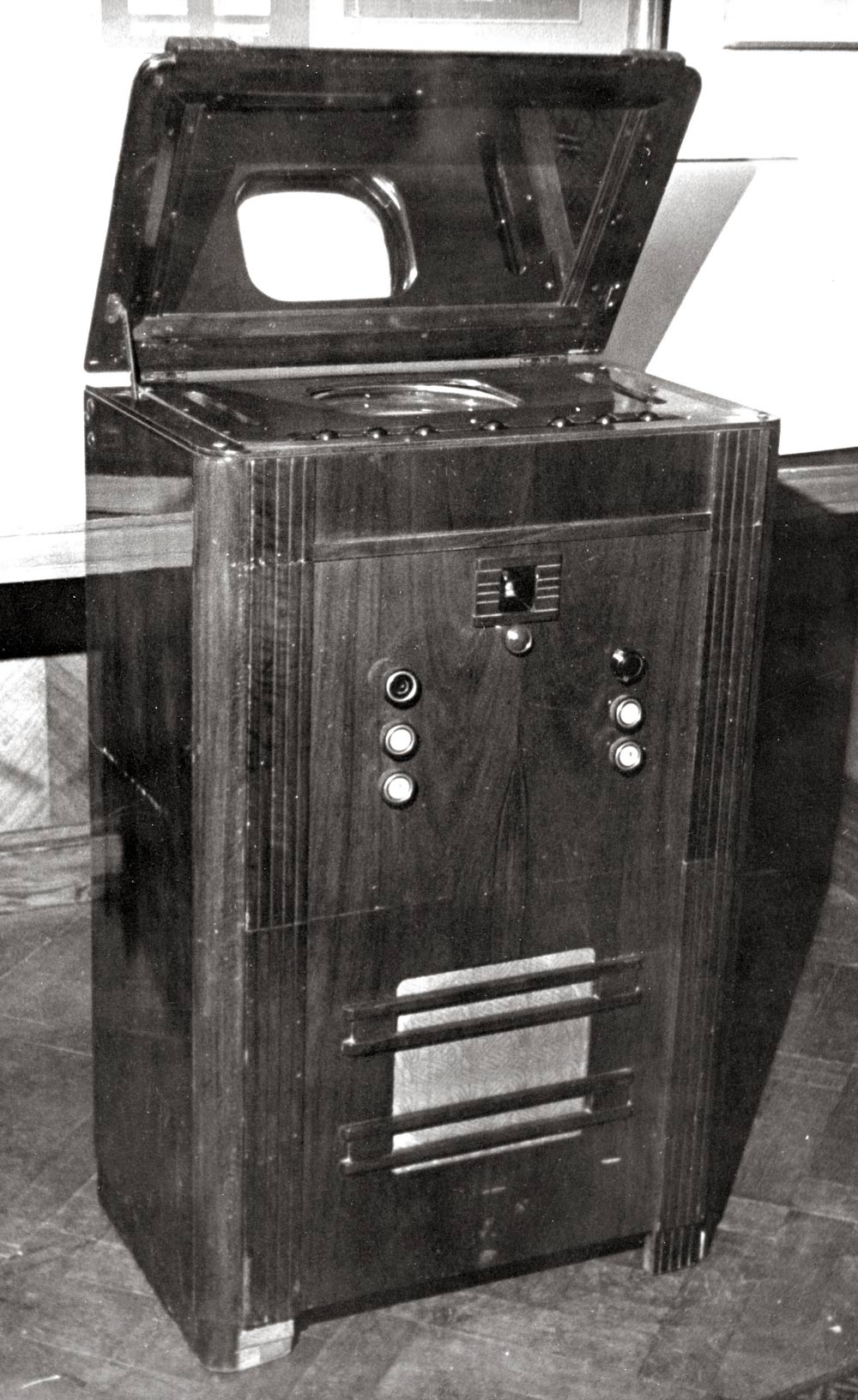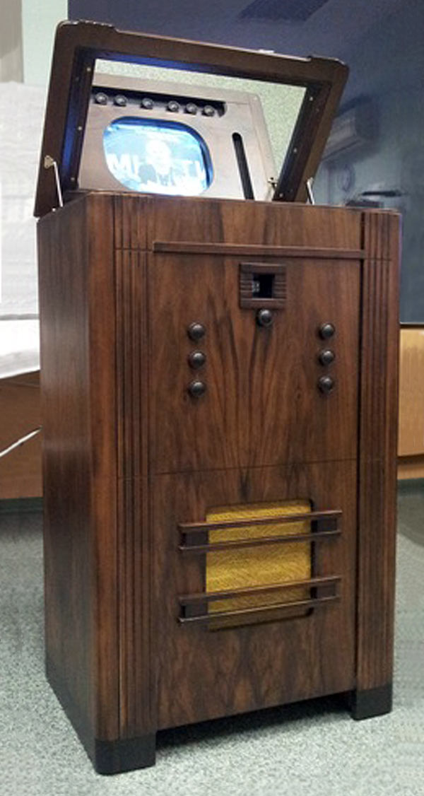 Телевизионный приёмник чёрно-белого изображения *ТК-1* с осени 1938 года выпускал Ленинградский завод имени Козицкого. В сентябре 1937 года была организована первая в СССР публичная демонстрация высококачественного электронного телевидения. А уже в октябре 1938 года был запущен в опытную эксплуатацию Московский телевизионный центр на 343 строки (25 Гц), оборудованный аппаратурой из США. Первым телевизором, рассчитанным на приём МТЦ, был консольный телевизор *ТК-1* разработанный по документации и образцам США, где подобные телевизоры выпускали с 1934 года. В телевизоре было 33 радиолампы и круглый кинескоп 22-ЭЛПТ-1 с длиной горловины в метр, отчего расположен он был вертикально а зеленоватое изображение (цвет свечения люминофора) размером 14х18 см проецировалось зрителю посредством зеркала вмонтированного в верхнюю крышку приёмника и открываемой на угол 45 градусов. Телевизор выпускали до 1941 года постоянно усовершенствуя, чаще в сторону упрощения. Большинство деталей и узлов к телевизору поставлялось из США. Настройка и испытания телевизоров представляли достаточные трудности и требовали высокой квалификации инженеров и сборщиков. Всего заводом было выпущено около 6 тысяч телевизоров. Все они разошлись по лабораториям для изучения процесса приёма телевидения, по различным учереждениям, а небольшая часть была выставлена в свободную продажу и куплена состоятельными гражданами СССР.