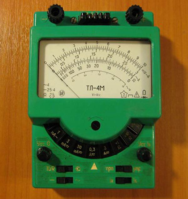 Электроизмерительный прибор типа *ТЛ-4* выпускался с 1965 года. Электроизмерительный прибор типа *ТЛ-4* представляет собой ампервольтомметр, предназначенный для измерения в широких пределах напряжений постоянного и переменного тока, а так же сопротивлений в различных электрических цепях. Подробнее в документации ниже. С 1981 года выпускался прибор *ТЛ-4М*, а с 1987 года прибор *ТЛ-4М2* с добавлением функций для измерения параметров транзисторов. Другой информации по этим приборам пока нет.