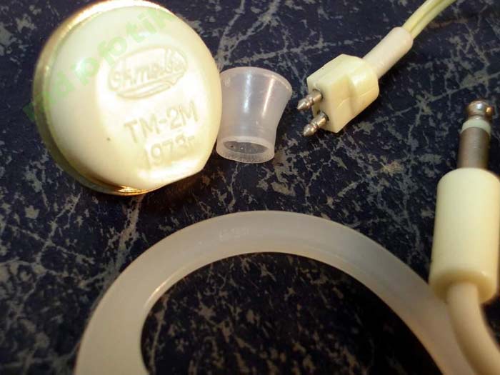 Ушной телефон *ТМ-2* выпускался с 1961 года Тульским заводом *Октава*. Долгожитель в производстве. С индексами А, Б, В, М и т.д. кроме завода *Октава* выпускался другими заводами страны, в том числе Московским заводом *Ритм* до начала 90-х. Предназначен для индивидуального прослушивания звукового сопровождения с бытовой аппаратуры с гнездом Ш2П. Диапазон частот 200...3000 Гц. Неравномерность ЧХ 18 дБ. Средняя звуковая отдача не менее 8 Па.