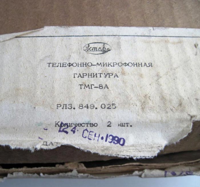 Телефонно-микрофонная гарнитура *ТМГ-8А* выпускал с 1988 года Тульский завод *Октава*. Гарнитура предназначена для комплектования лингофонных кабинетов, для прослушивания звуковых программ от бытовой радиоэлектронной аппаратуры слабослышащими. Технические характеристики: Диапазон рабочих частот 30...18000 Гц. Чувствительность телефона на частоте 1000 Гц - 12 мВ/Па. Парафоническая чувствительность микрофона на частоте 1000 Гц - 0,8 мВ/Па. Масса гарнитуры 350 гр.