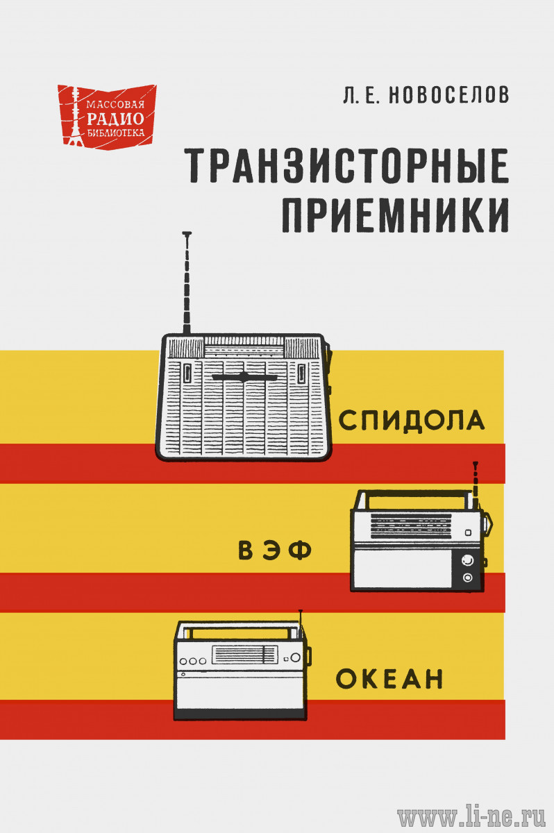 Книги содержит технические и эксплуатационные характеристики переносных транзисторных приемников II класса «Спидола», «ВЭФ-Спидола», «ВЭФ-Спидола-10», «ВЭФ-12», «ВЭФ-201» и «Океан», краткое описание принципиальных схем и конструкций, карты режимов по постоянному и переменному току, электромонтажные схемы печатных плат и приемников в целом, кинематические схемы верньерных устройств, материалы по настройке, регулировке и проверке основных параметров. Кроме того, в книгах рассмотрены причины возникающих в процессе эксплуатации неисправностей, способы их отыскания и методы устранения, а также приведены характеристики моточных изделий, громкоговорителей и полупроводниковых приборов. Книги рассчитана на подготовленных радиолюбителей и специалистов по ремонту транзисторных приемников. (Между прочим ОЧЕНЬ важное замечание!)