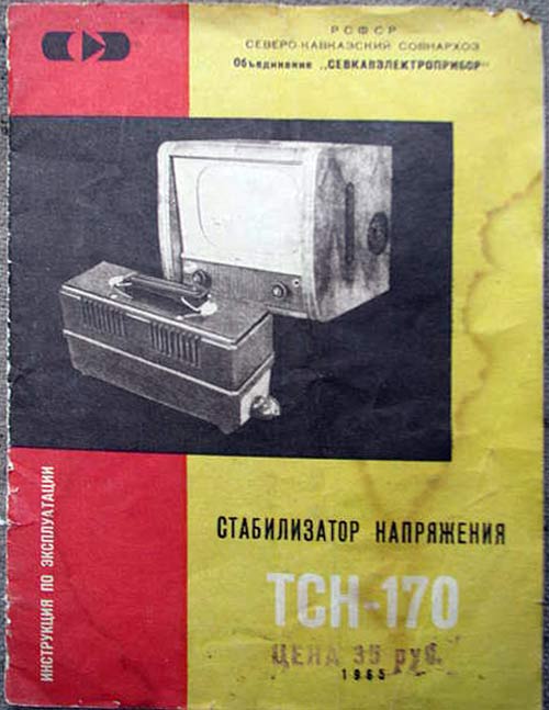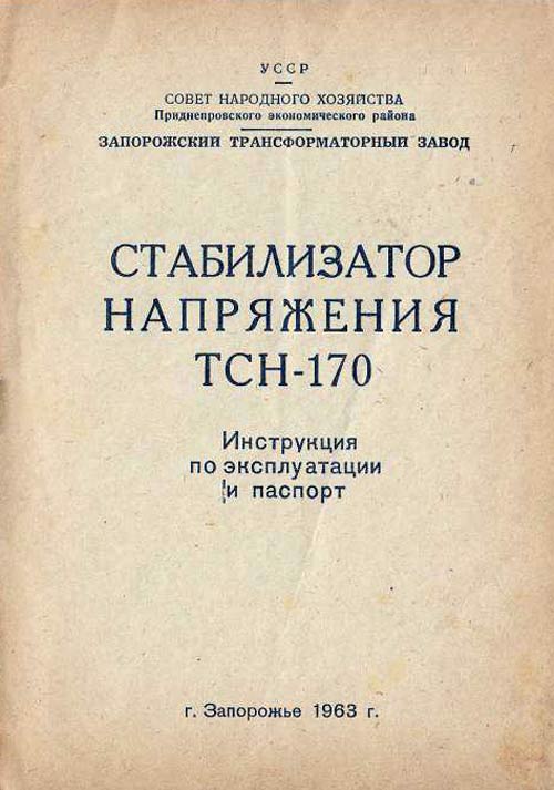 Феррорезонансный стабилизатор напряжения *ТСН-170* выпускался с I-кв 1961 года несколькими предприятиями страны. Предназначен для питания переменным стабилизированным напряжением 220 вольт, при его изменениях в электрической сети любых телевизоров с потребляемой мощностью не превышающей 170 ватт.