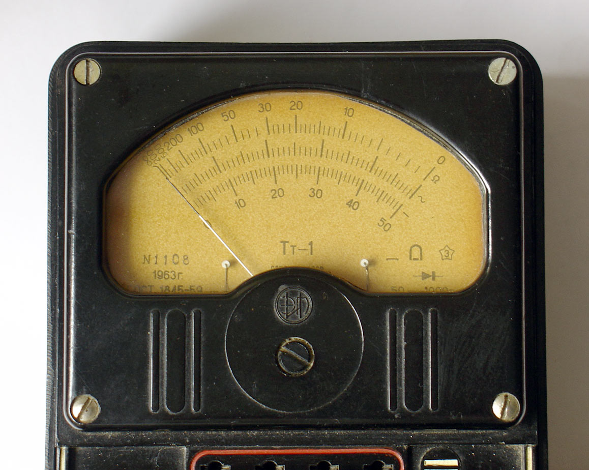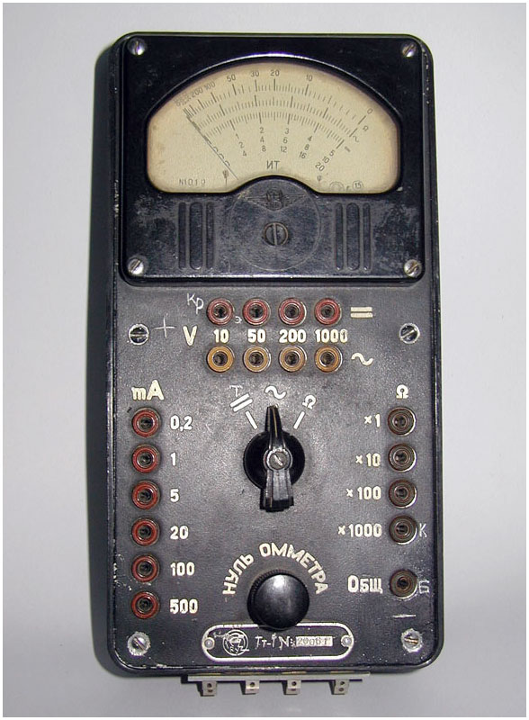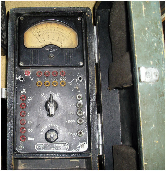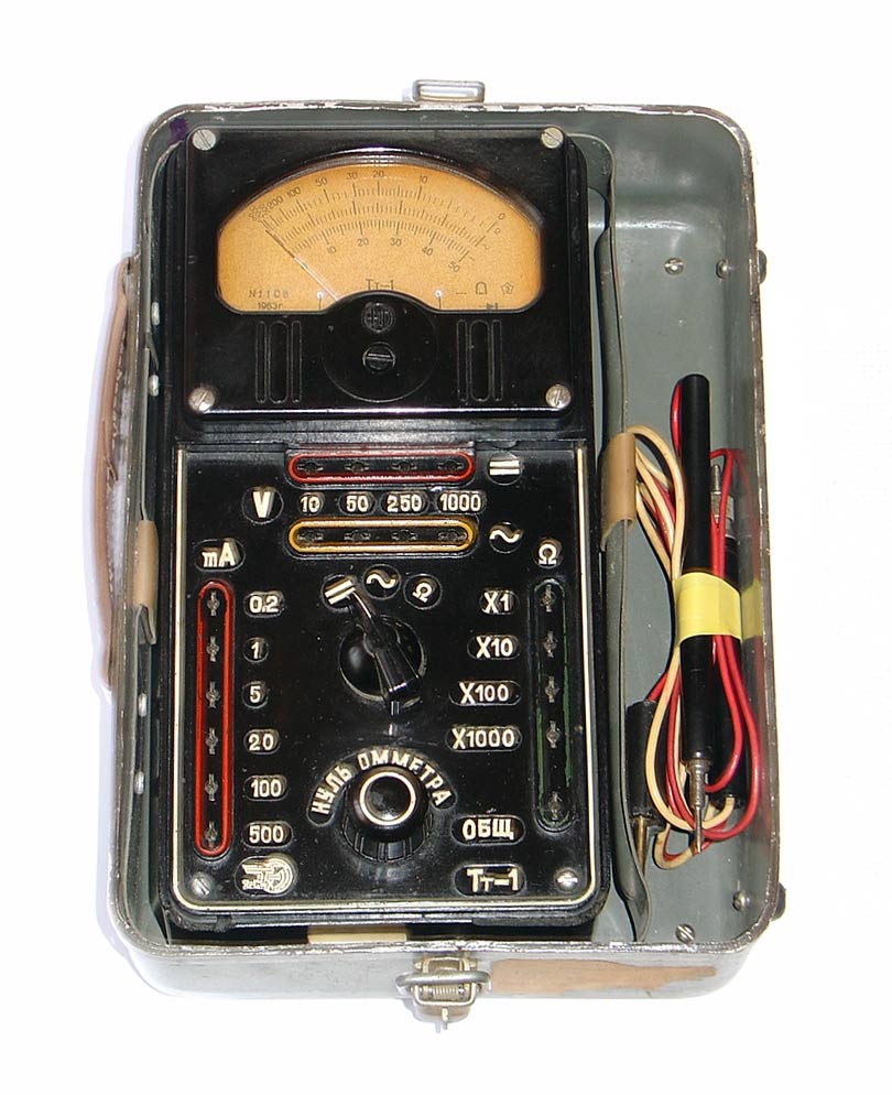 Комбинированный измерительный прибор типа *ТТ-1* с октября 1947 года выпускал один из заводов министерства авиационной промышленности. Комбинированный измерительный прибор **ТТ-1** - один из первых отечественных портативных комбинированных измерительных приборов. Он предназначен для измерения постоянного и переменного напряжения, силы постоянного тока, сопротивлений.