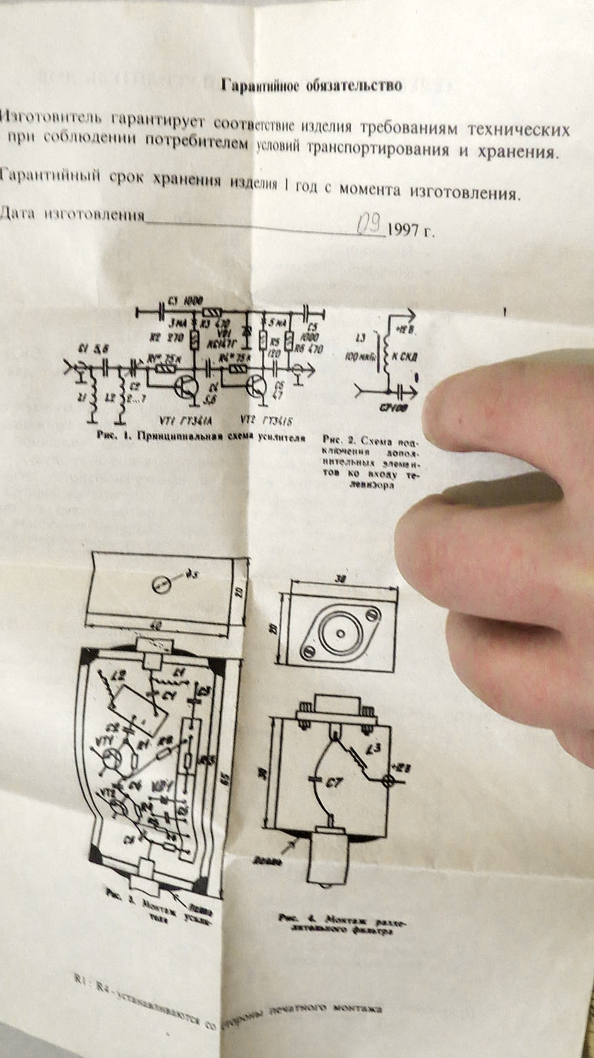 Радиоконструктор *Телевизионный антенный усилитель* выпускался предположительно с 1997 года неустановленным изготовителем. Возможно это был кооператив, фирма или частное лицо, сейчас уже установить практически невозможно. Информация о радиоконструкторе дана в фотографиях.