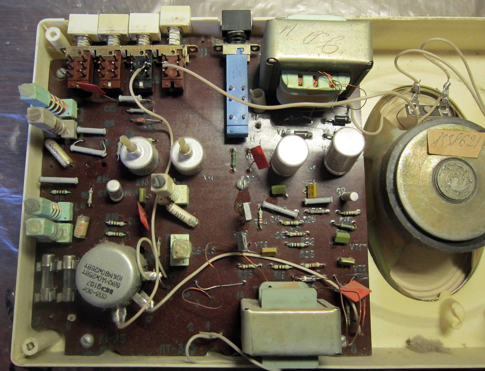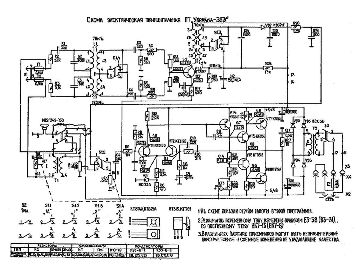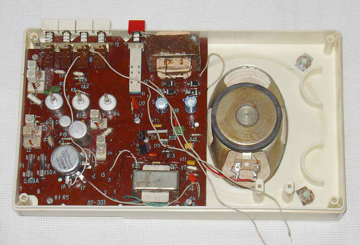 Приёмник трёхпрограммный *Украина-303* с I-кв 1983 года выпускал Макеевский завод электробытовых изделий *Импульс*. ПТ **Украина-303** предназначен для прослушивания любой из трёх программ, передаваемых по уплотнённой системе 3-х программного проводного вещания. ПТ работает с напряжением в трансляционной сети 30 В. Диапазон воспроизводимых частот звука НЧ канала 160...8000, ВЧ каналов 150...6300 Гц. Номинальная выходная мощность - 300 мВт, максимальная до 700 мВт. Имеется возможность дополнительного усиления первого НЧ канала. Потребляемая мощность 4 Вт. Габариты ПТ - 280х187х98 мм. Масса - 2,2 кг. С 1988 года ПТ выпускался под наименованием *Украина ПТ-303*.