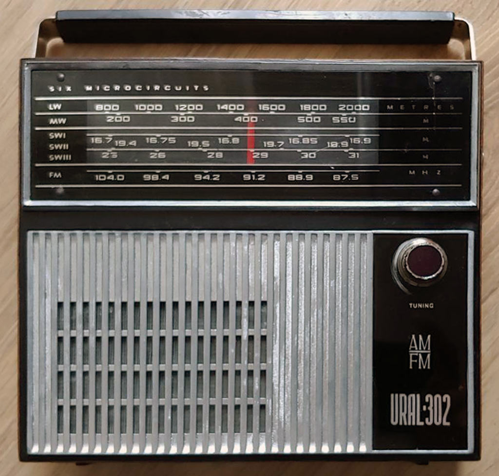 Портативные радиоприёмники *Урал-301* и *Урал-302* с 1971 и 1972 года выпускал Сарапульский радиозавод. Это первые переносные приёмники в СССР собранные на гибридных интегральных микросхемах. В приёмниках общая схема и конструкция, разница в отсутствии АПЧ в первой модели и в том, что вторая модель была предназначена как для внутреннего рынка, так и на экспорт. Внешний вид приёмников одинаков, кроме надписей и границ КВ и УКВ диапазонов в экспортном варианте. Любой из приёмников рассчитан на приём в диапазонах ДВ, СВ и КВ в поддиапазонах KB-1 12,1...11,6 МГц, КВ-2 9,9...9,4 МГц, КВ-3 7,3...3,95 МГц и в диапазоне УКВ 73,0...65,8 МГц. В ДВ, СВ приём ведётся на магнитную антенну, KB, УКВ на телескопическую. Чувствительность в ДВ - 2,5 мВ/м, СВ - 1,0 мВ/м, KB - 500 мкВ, УКВ - 100 мкВ. ПЧ тракта АМ - 465 кГц, ЧМ - 10,7 МГц. Избирательность по соседнему каналу 30 дБ. Полоса частот АМ тракта - 315...3550 Гц, ЧМ - 315...7000 Гц. В приёмниках применены 6 гибридных интегральных микросхем *Трап-2*. Громкоговоритель 0,5ГД-31. Номинальная выходная мощность 0,4 Вт. Питание 6 элементов А-343 или две батареи 336. Размеры приёмника 211 х 233 х 76 мм. Масса с батареями 2 кг.