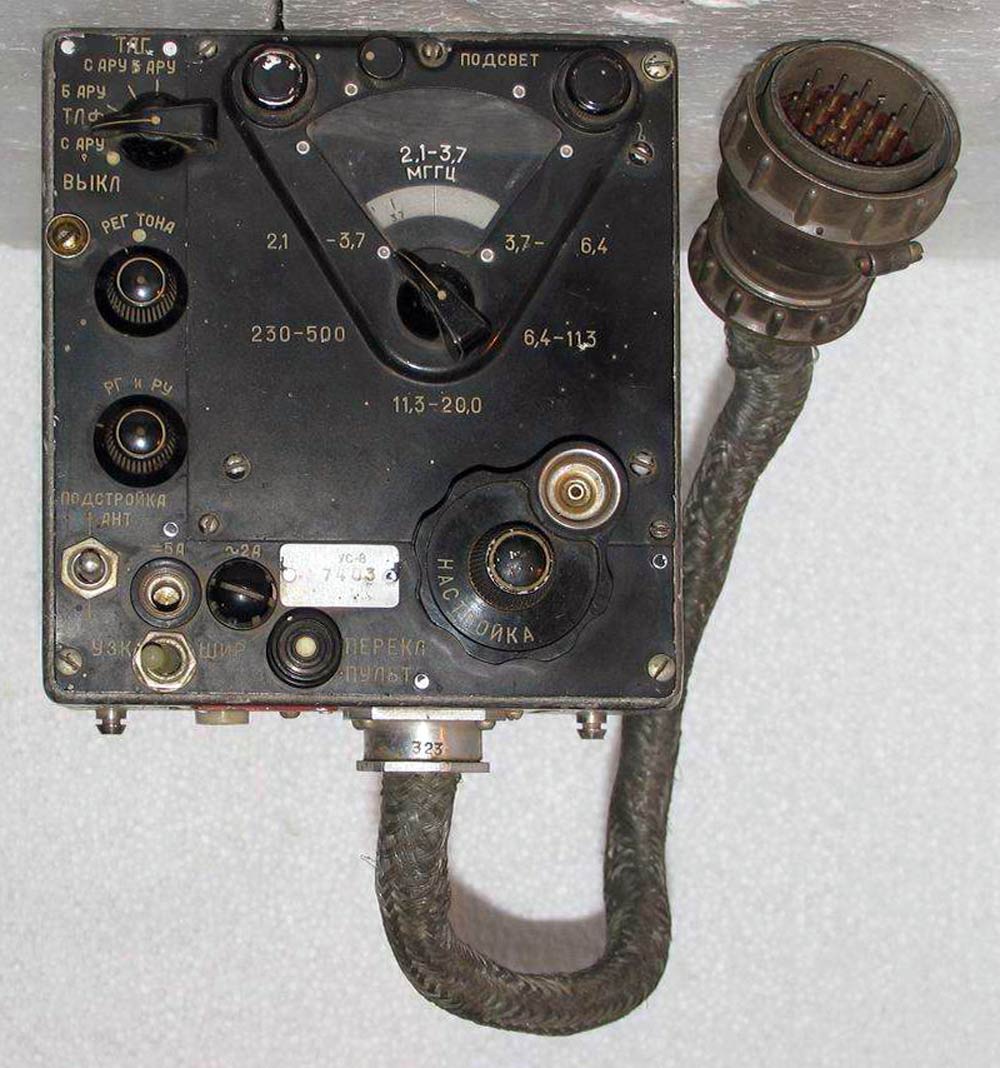 Авиационный радиоприёмник *УС-8* (Двина) выпускался с 1956 года Московским радиозаводом № 528. Состоит из самого приёмника, блока питания и выносного пульта управления, соединённых кабелем длиной 25 м. Выпускался и вариант *УС-8к* отличавшийся красным светом подсветки шкалы в ПУ. Приёмник питается от бортовой сети переменного тока 115 В, 400 Гц и постоянного тока 27 В. Использовался в самолётах Ту-95, Ту-126, Ту-142, Ан-12, Ан-24, Ан-26, Ан-30, Ан-32 в паре с передатчиками Р-807, Р-808, Р-813, Р-836. Поддиапазоны: 230...500 кГц, 2,1…3,7 МГц, 3,7…6,4 МГц, 6,4…11,3 МГц, 11,3…20,0 МГц. Промежуточная частота 1035 кГц. Чувствительность в ТЛФ 15, ТЛГ 5 мкВ. Габариты блока РП 460х185х340 мм. Вес комплекта 27,5 кг.