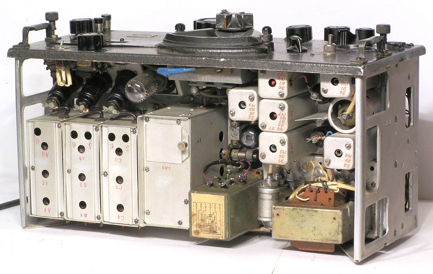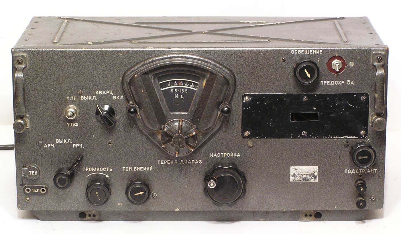 Авиационный радиоприёмник *УС-9* (Соловей) выпускался с 1947 года. Создан на основе американского приёмника *BC-348* и практически является его копией. В приёмнике применено 9 ламп серии: 6К7, 6Ж7, 6Ж8, 6Ф7, 6Б8, 6П6С. Диапазоны 200…500 кГц и 1,5…18 МГц. Чувствительность 3…8 мкВ (телеграф), 5…15 мкВ (АМ). Промежуточная частота 915 кГц. Питание от бортовой сети, либо постоянного тока 27 В, либо переменного 115 В, 400 Гц через встроенный умформер. Потребляемая мощность 35 Вт. Габариты приёмника 245х460х275 мм. Масса 18 кг.