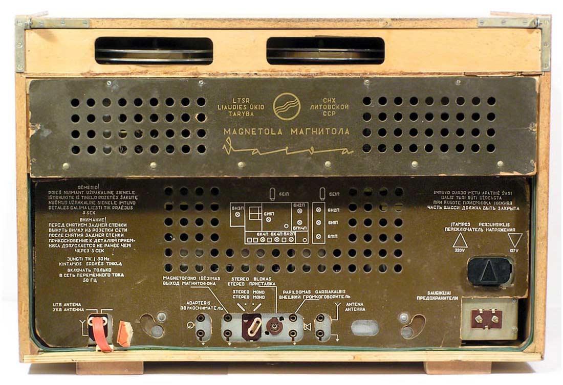 Магнитола *Вайва* с 1960 года выпускалась Каунасским радиозаводом. Магнитола **Вайва** является комбинированным устройством, состоящим из супергетеродинного радиоприёмника 2 класса и магнитофонной панели **Эльфа-17**. Магнитола предназначена для приёма в диапазонах: ДВ, СВ, КВ и УКВ, а также для записи и воспроизведения звука. Магнитола выполнена в деревянном корпусе с поднимающейся крышкой. Номинальная выходная мощность магнитолы 2 Вт. Питание от сети 127 или 220 в. Потребляемая мощность при приёме 80, при работе магнитофона 125 Вт. Габариты модели 622х435х375 мм, вес 26 кг. Цена с 1961 г. 189 руб. 75 коп. Первые магнитолы имели индикатор настройки 6Е5С, впоследствии заменённую на 6Е1П.