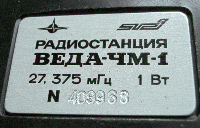 Одноканальная радиостанция *Веда-ЧМ* выпускалась с 1992 года. РС личного пользования с ЧМ, предназначена для организации симплексной радиосвязи без поиска и подстройки в диапазоне 27,15...27,405 МГц. Выпускалась в двух модификациях: *Веда-ЧМ* и *Веда-ЧМ-1*. Радиостанция имеет 8 частот селективного вызова абонентов; Дальность связи: *Веда-ЧМ* - 5 км; *Веда-ЧМ-1* 0 8 км. Чувствительность 0,5 мкВ. Выходная мощность передатичика 0,5 и 1 Вт. В комплекте зарядное устройство для комплекта аккумуляторов; блок питания от сети 220 В 50 Гц; блок питания от аккумулятора автомобиля 12 В; усилитель мощности радиостанции *Веда-ЧМ* на 4 Вт с питанием от бортсети автомобиля, который увеличивает дальность связи до 10...12 км. Габариты радиостанции 180х71х40 мм; её масса 0,5 кг.