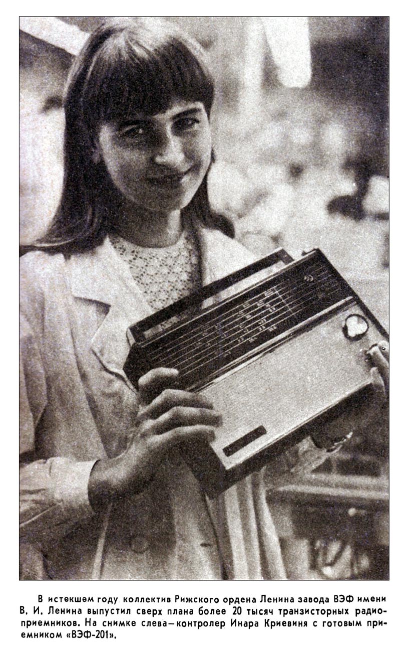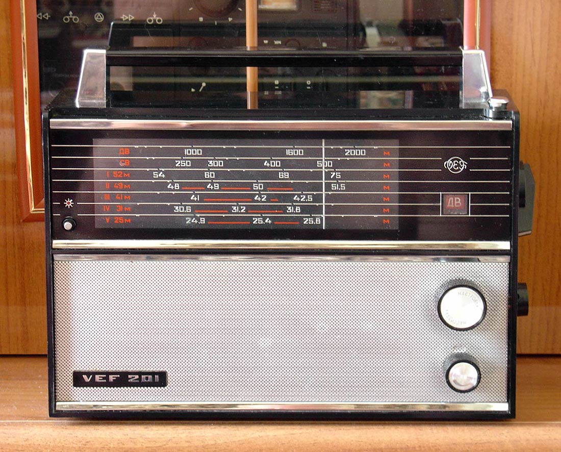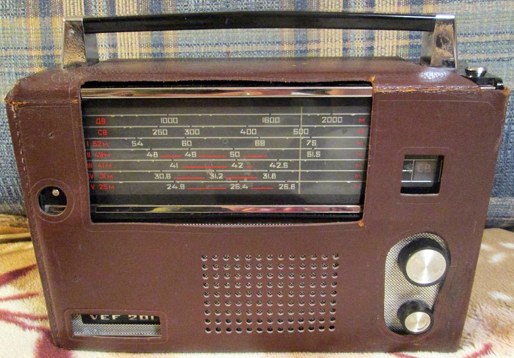 Портативный радиоприёмник *ВЭФ-201* с начала 1969 года выпускал Рижский государственный электротехнический завод *ВЭФ*. Транзисторный радиоприёмник 2-го класса **ВЭФ-201** предназначен для приёма программ радиовещательных станций в диапазонах ДВ, СВ и пяти поддиапазонах КВ. Кроме внешнего оформления - конструкция, электрическая схема (кроме небольшого упрощения) и параметры нового приёмника аналогичны приёмнику **ВЭФ-12**. Отдельно к радиоприёмникам подобного типа продавался блок питания от сети, который устанавливался в батарейный отсек. Партия экспортных радиоприёмников *ВЭФ-201* имели в комплекте кожаный чехол для лучшей сохранности радиоприёмника.