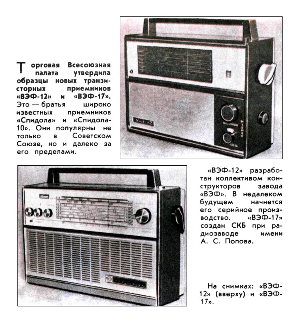 Портативный радиоприёмник *ВЭФ Транзистор-17* разработан и опытно выпущен в 1967 году Рижским Государственным электротехническим заводом *ВЭФ*. Радиоприёмник планировали выпускать и в экспортном варианте, который имел девять диапазонов, вместо восьми в варианте для СССР. Всесоюзная торговая палата в 1967 году утвердила образцы моделей переносных транзисторных радиоприёмников второго класса **ВЭФ-12** и **ВЭФ Транзистор-17**. Оба радиоприёмника начали выпускать с октября 1967 года, но это был опытный выпуск. В результате удачных испытаний, радиоприёмник **ВЭФ-12** с ноября 1967 года был поставлен на конвейер и выпускался небольшими партиями, а с 1968 года он был запущен уже в массовый выпуск. Документация по радиоприёмнику **ВЭФ Транзистор-17** была передана на Минский радиозавод, где он после незначительной модернизации начал выпускаться с 1969 года, но уже под маркой **Океан**. Радиоприёмник **ВЭФ Транзистор-17** как и **ВЭФ-12** созданы в СКБ при радиозаводе имени Попова в Риге. Оба они братья известных радиоприёмников **ВЭФ-Спидола** и **ВЭФ Спидола-10**. Эти радиоприёмники в свои годы были очень популярны не только в СССР, но и далеко за его пределами.
