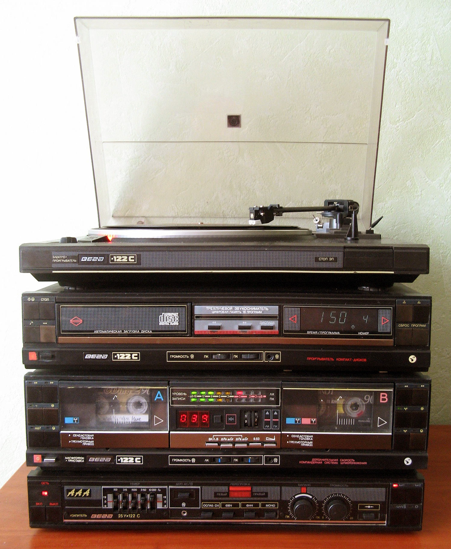 Стереофонический комплекс *Вега-122С* покомпонентно выпускался с 1991 года Бердским радиозаводом. Стереокомплекс состоит из автономных аппаратов; электропроигрывателя *Вега ЭП-122С*, проигрывателя компакт-дисков *Вега ПКД-122С*, двухкассетного магнитофона-приставки *Вега МП-122С*, усилителя *Вега 25У-122С* или *Вега 50У-122С* и двух акустических систем *Вега 50АС-106*. Магнитофон-приставка *Вега МП-122С* выпускался с 1987 года, акустическая система *Вега 50АС-106* с 1989 года, электропроигрыватель *Вега ЭП-122С* с 1990 года, остальные компоненты с 1991 года. Все компоненты продавались отельно и стереокомплекс можно было составить самому или же его составляли в торговом предприятии. Каждый из аппаратов комплекса описан на сайте в соответствующих разделах.