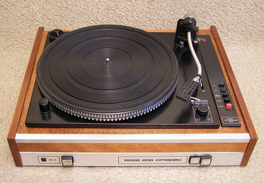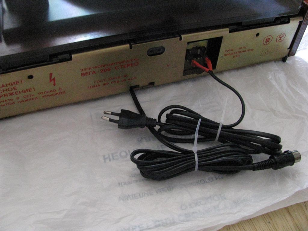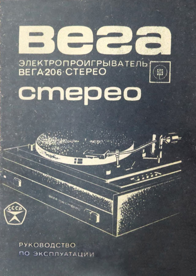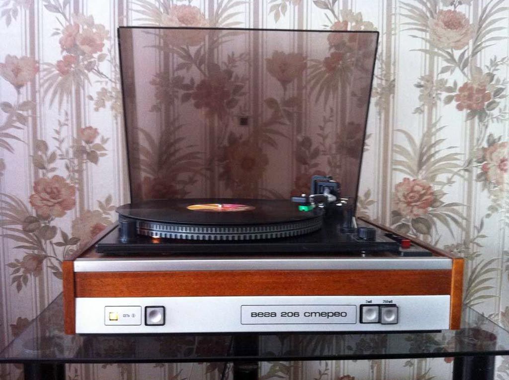 Электропроигрыватель *Вега-206-стерео* с 1975 года выпускал Бердский радиозавод. **Вега-206-стерео** - стереофонический проигрыватель 2-й группы сложности предназначенный для прослушивания моно и стереофонических пластинок совместно с электрофоном, приёмником и УКУ. Частота вращения диска 33 и 45 об/мин. Чувствительность без корректирующего усилителя 0,7, с усилителем 70 мВ. Полоса рабочих частот не уже 31,5...16000 Гц. Уровень рокота -55 дБ, фона - 57 дБ, детонации - 0,15%. Переходные затухания между каналами на частоте 315, 1000 и 10000 Гц - 15, 20 и 6 дБ. Потребляемая мощность 15 Вт. Габариты электропроигрывателя 450х380х175 мм. Вес 13 кг. Цена модели 160 рублей.