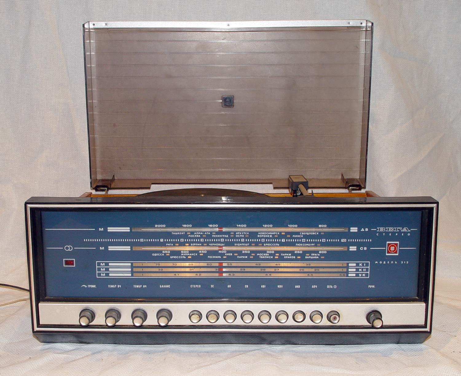 Радиола *Вега-312-стерео* с 1972 года выпускалась Бердским радиозаводом. Радиола осуществляет приём в диапазонах: ДВ, СВ, КВ-1 75,9...40 м, КВ-2 32...24,8 м, УКВ-ЧМ (стерео) и воспроизведение грамзаписи с моно и стереофонических пластинок. В УКВ диапазоне имеется АПЧ. ЭПУ трёхскоростное. АС закрытого типа *ЗАС-2*, в которых размещено по громкоговорителю ЗГД-38. Максимальная выходная мощность УНЧ 2х3 Вт. Размеры радиолы 220х530х380 мм, одной АС 376х262х190 мм. Масса радиолы с АС 20 кг. Цена радиолы 150 рублей, позже (примерно с 1976 года) 193 рубля.