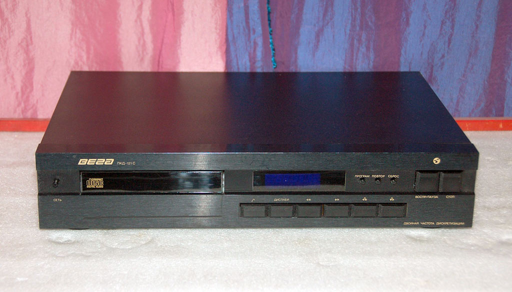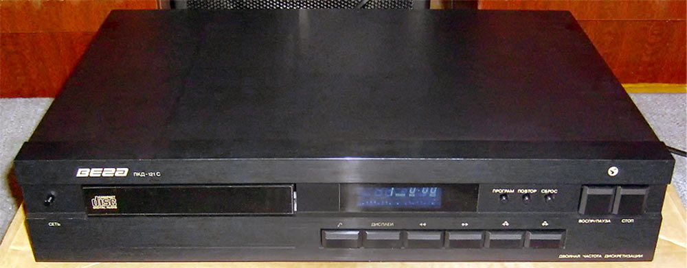 Лазерный проигрыватель компакт-дисков "Вега ПКД-121С" с 1989 года опытно выпускал Бердский радиозавод. В 1989 году ПО "Вега" закупило у японской фирмы "CEC" (Chuo Denki Co) комплекты для "отвёрточной" сборки ПКД. Проигрыватель с таким же дизайном и похожей схемой (тот же процессор LC6554, тот же ЦАП LC7881 производства "Sanyo") закупался фирмой "Marantz" (США) и поступал в продажу под названием "Marantz Digisonic CD2474". В СССР аппарату присвоили название "Вега ПКД-121". Всего было собрано около трёх тысяч этих ПКД. Цена аппарата составляла 1895 рублей. Три последних фото - прототип ПКД.