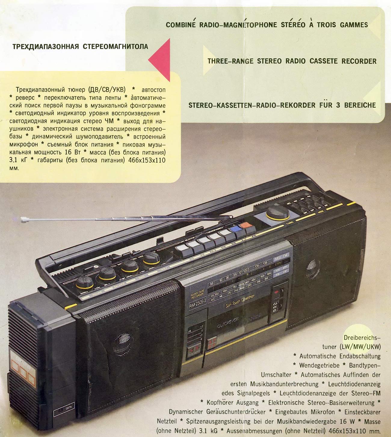 Магнитолы *Вега РМ-250С-2/3* с 1993 года выпускало Бердское ПО *Вега*. Магнитола **Вега РМ-250С-2** - модернизация модели **Вега РМ-250С**. Рассчитана на приём в диапазонах ДВ, СВ, УКВ и для записи фонограмм на магнитную ленту МЭК-I и МЭК-II, с последующим воспроизведением. Есть динамический шумоподавитель, автостоп, индикация уровня записи и воспроизведения, ускоренный поиск фонограмм по паузам, расширение стереобазы, режимы: автореверс и бесконечное воспроизведение. Музыку можно слушать на встроенные АС или на головные телефоны. Магнитола **Вега РМ-250С-3** отличалась отсутствием индикатора. Диапазон частот по звуковому давлению в диапазонах АМ 160...4000; ЧМ 160..10000 Гц. Диапазон частот на ЛВ для ленты МЭК-I (из гамма-окиси железа) 40...12500 Гц. Уровень детонации 0,3%. Выходная мощность МЛ: максимальная синусоидальная 2х4 Вт; пиковая музыкальная 2х8 Вт. Габариты любой магнитолы 466x153x110 м, БП 46x140x75 мм. Вес без БП и батарей 3 кг, БП 0,75 кг. В магнитоле **Вега РМ-250С-2** применён японский реверсный лентопротяжный механизм фирмы Tanashin, модель TN-223-168f с переворачивающейся головкой. Этот же ЛПМ применяли в магнитоле *National Panasonic RX-FD-80*. Радиоприёмник в МЛ 250-С2 абсолютно аналогичен приёмнику модели *Вега 338-С2*.