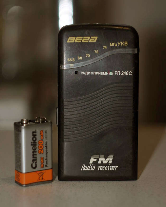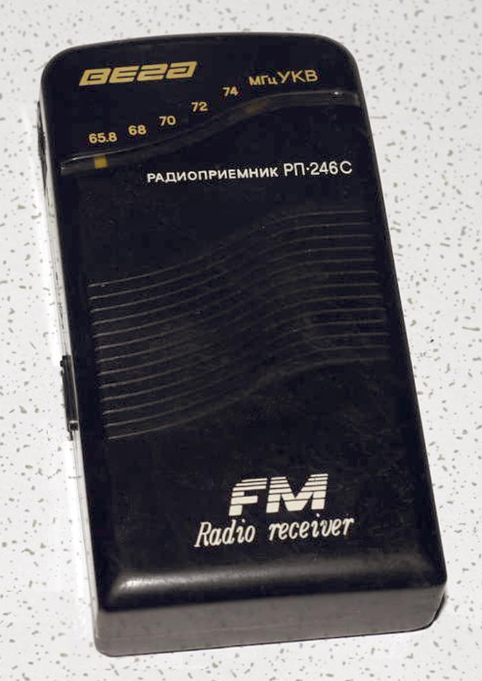 Малогабаритный УКВ радиоприёмник *Вега РП-246С* выпускался с 1995 года Бердским ПО *Вега*. Радиоприёмник рассчитан на приём радиовещательных станций со стереофоническим вещанием в диапазоне 65,8...74 МГц. Принимаются и монофонические станции. Прослушивание ведётся на малогабаритные стереофонические телефоны, а их проводники являются и антенной для приёма. Чувствительность 10 мкВ. Номинальная выходная мощность 10 мВт. Диапазон звуковых частот не уже 63...12500 Гц. Питание приёмника осуществляется от двух встроенных аккумуляторов общим напряжением 2,4 В. Имеется встроенная подзарядка аккумуляторов от электрической сети. Заряда аккумуляторов достаточно для непрерывной работы приёмника в течении 10...12 часов. Приёмник был выпущен ограниченной серией.
