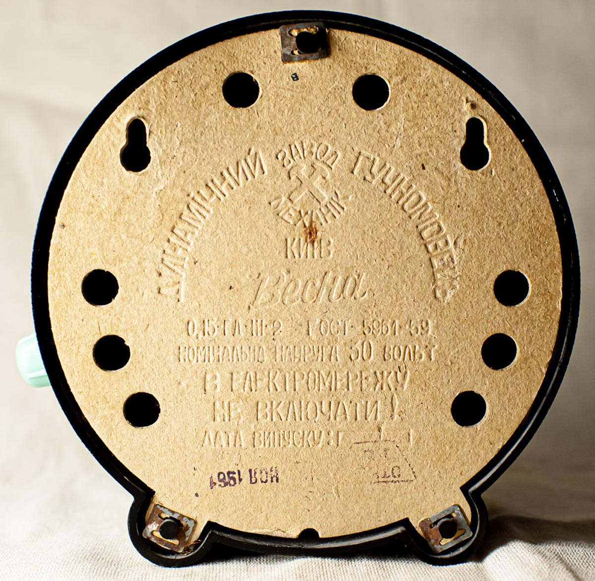 Абонентский громкоговоритель "Весна" выпускался возможно с 1961 года Киевский завод "Механик". Это стандартный 30-вольтовый абонентский громкоговоритель, который по габаритам и оформлению повторяет другой абонентский громкоговоритель этого же завода под наименованием "Десна".