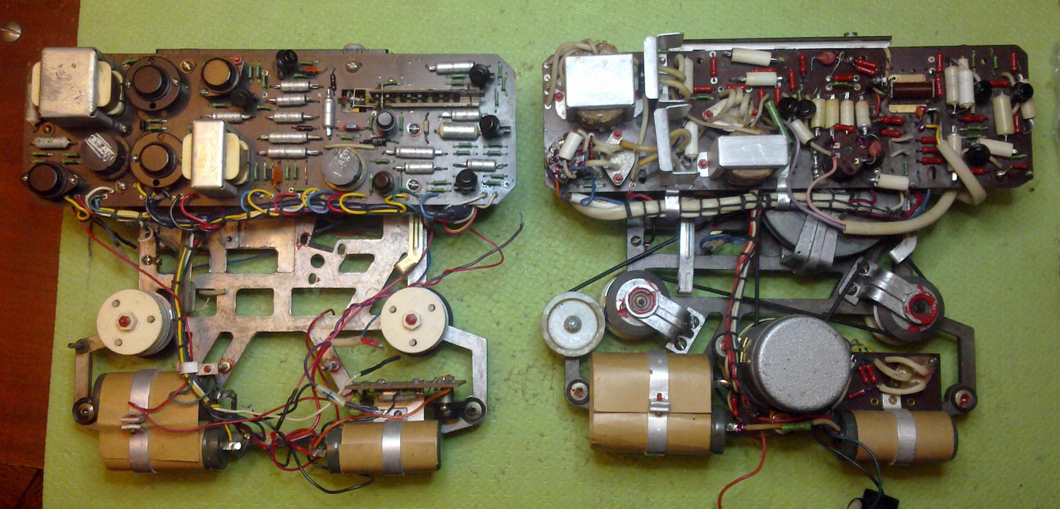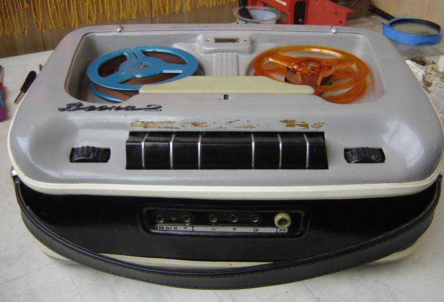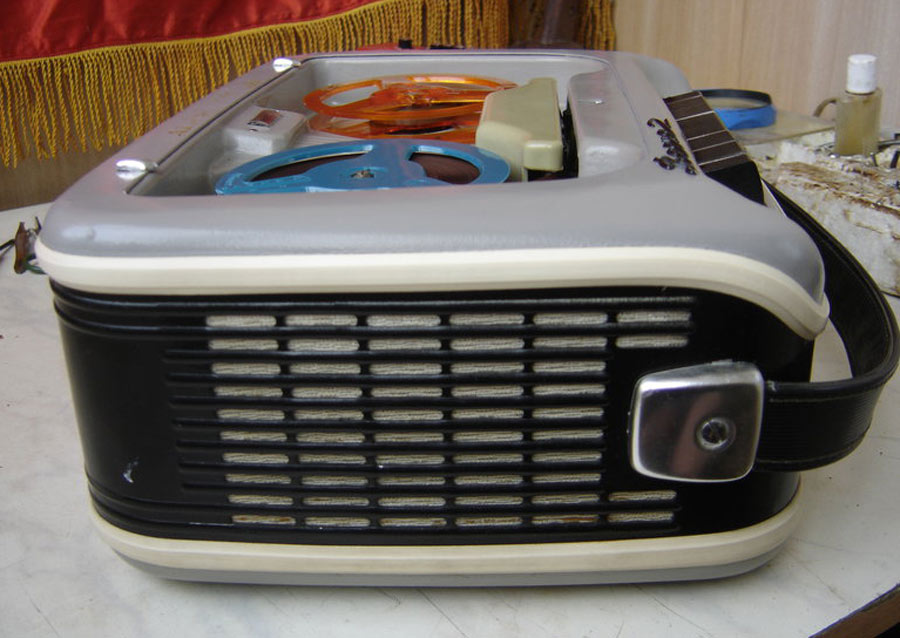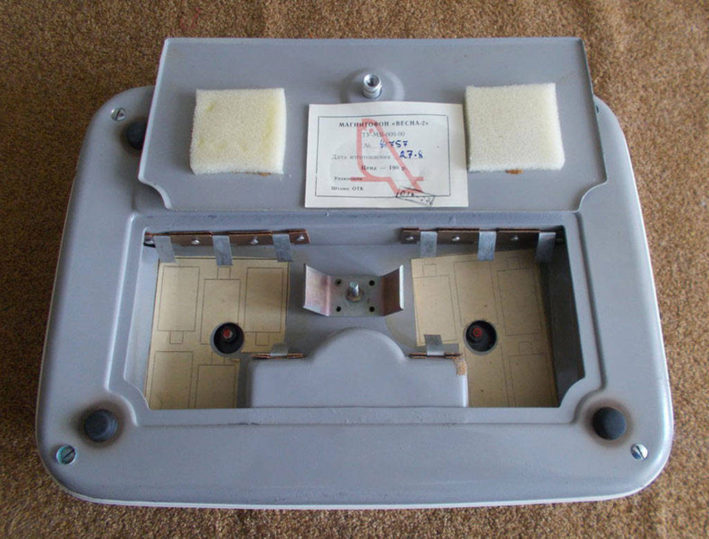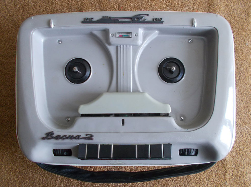 Портативные магнитофоны *Весна* и *Весна-2* с 1963 и 1964 года выпускали Киевский завод *Коммунист* и Запорожский завод передвижных электростанций. **Весна** двухдорожечный переносной магнитофон с универсальным питанием. Катушки вмещают 100 м. магнитной ленты типа 2 (6). Скорость ЛПМ - 9,53 см/сек. Есть ускоренная перемотка ленты. Диапазон частот воспроизводимых громкоговорителями 1ГД-9 - 100...6000 Гц. Номинальная выходная мощность 1 Вт. Питание от 10 элементов А-373, внешнего источника 12 В и от сети через выпрямитель. Магнитофон собран в корпусе из металла. В нём применено 11 транзисторов и 5 диодов. Габариты магнитофона 340х250х130 мм. Масса 5,5 кг. Магнитофон по оформлению почти не отличается от базового, но есть изменения в схеме. Установлены новые громкоговорители 1ГД-18, в связи с чем при снижении выходной мощности до 0,8 Вт, улучшилась экономичность, увеличилось звуковое давление и повышен диапазон частот на ЛВ от 63 до 10000 Гц, а воспроизводимых громкоговорителями от 100 до 10000 Гц. Другие параметры остались такими же как у базового магнитофона.