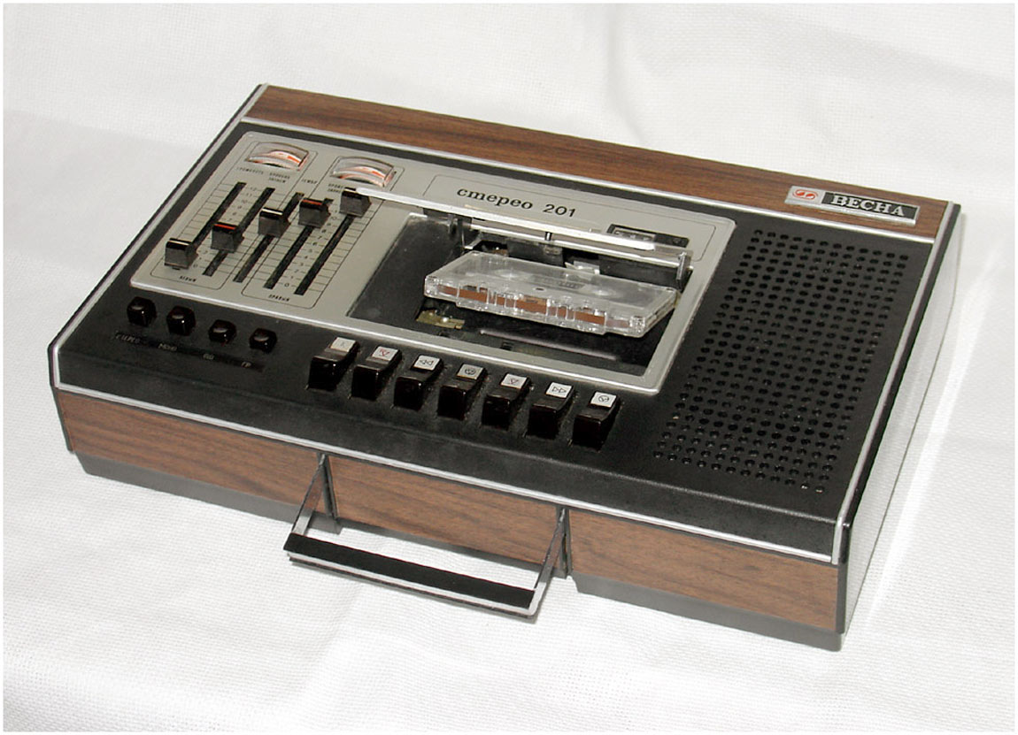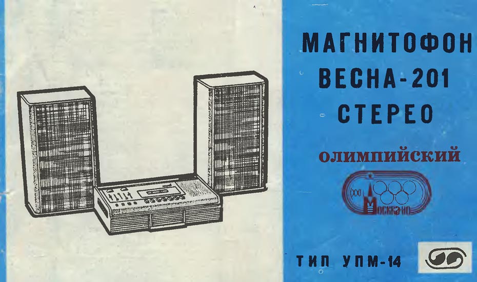 Кассетный стереофонический магнитофон *Весна-201-стерео* (УПМ-14) с 1977 года выпускал Запорожский ЭМЗ *Искра*. Магнитофон предназначен для записи и воспроизведения моно и стерофонических фонограмм. Он работает на собственный громкоговоритель как монофонический, а на выносные АС как стереофонический. Полоса воспроизводимых частот на выносных АС - 63...10000 Гц. Номинальная выходная мощность усилителей на собственную АС - 0,8 Вт, на выносные АС - 2х3 Вт. Питание 12 вольт от 8-ми элементов А-373 или от сети переменного тока через отдельный блок питания. Потребляемая мощность 30 Вт. Габариты магнитофона - 367х224х100 мм. Вес 4,7 кг. В преддверии Олимпийских игр с 1978 года к наименованию добавили атрибут **олимпийский**. Соответственно увеличилась и розничная цена магнитофона. До 1978 года футляр магнитофона по бокам и сзади наверх был оклеен декоративной плёнкой под дерево, а с 1978 года он выпускался только в пластмассе, с добавлением алюминевого оформления.