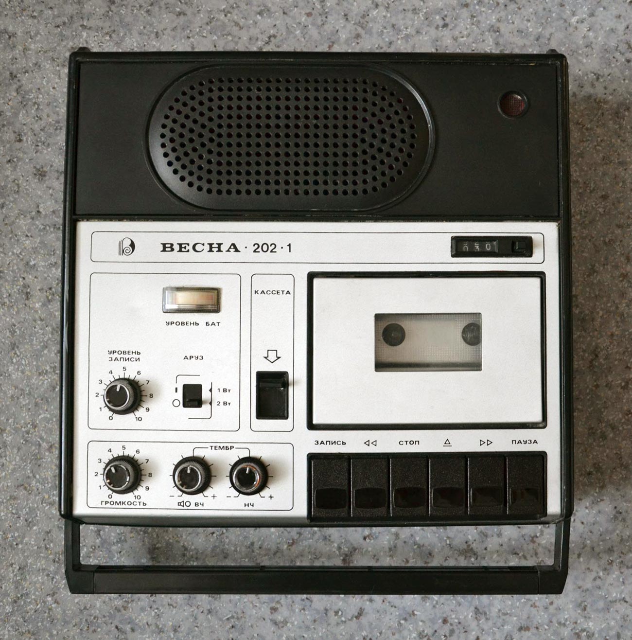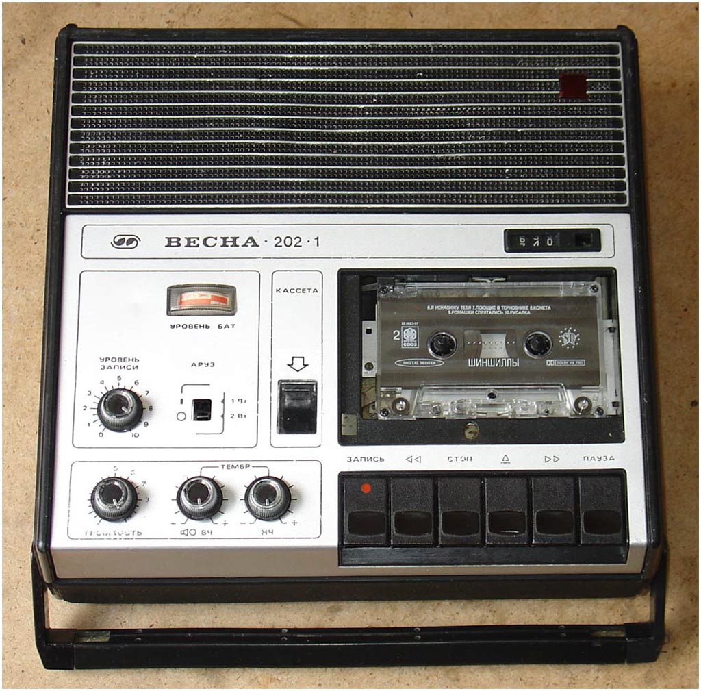 Портативный магнитофон *Весна-202-1* с начала 1983 года выпускал Запорожcкий электромашиностроительный завод *Искра*. К прежнему магнитофону **Весна-202** был применён ГОСТ 24863-81 и магнитофон стал не 2-го класса, а 2-й группы сложности и стал именоваться **Весна-202-1**. Изменений он не претерпел, разве что бесколлекторный двигатель был заменён коллекторным, хотя впоследствии ставились оба, да была заменена решётка громкоговорителя. Магнитофон имеет повышенную выходную мощность, систему ШП, ручную и автоматическую регулировку уровня записи. Контроль уровня записи осуществляется стрелочным индикатором, а расход магнитной ленты трёхдекадным механическим счётчиком. Диапазон рабочих частот магнитофона 63..12500 Гц. Питание осуществляется от 6-ти элементов типа А-373. Запись или воспроизведение производится при изменениях питающего напряжения от 5,1 до 9 В. Максимальная выходная мощность 2 Вт. Коэффициент детонации 0,4%. Габариты магнитофона - 296х276х81 мм, масса 4,2 кг. Цена 195 рублей.