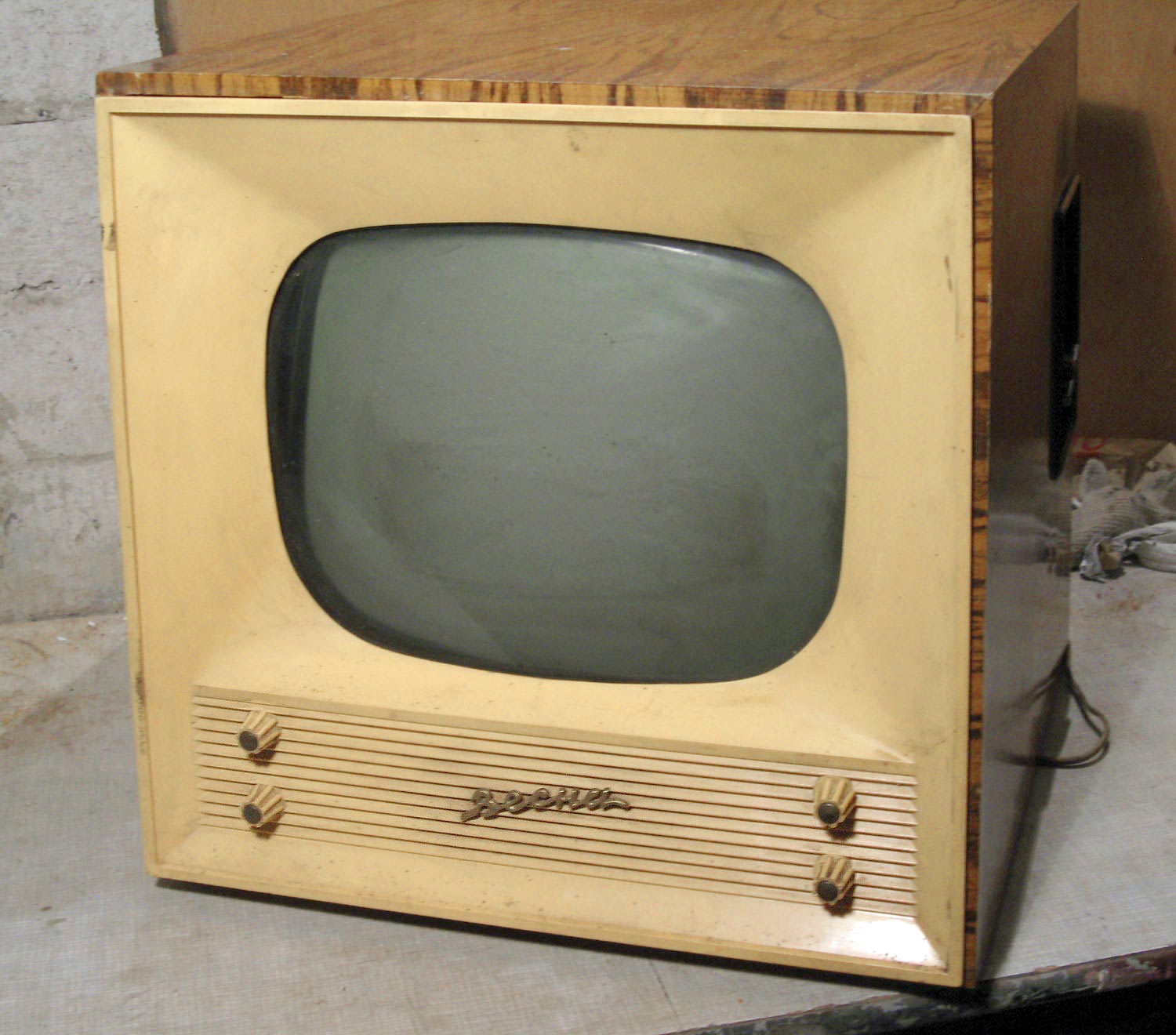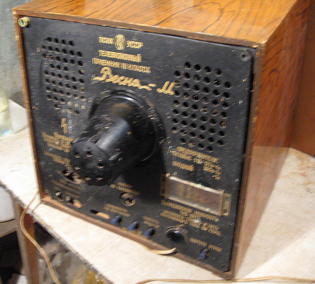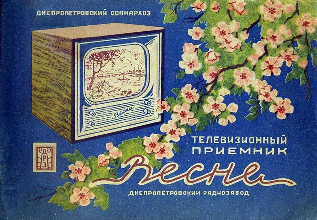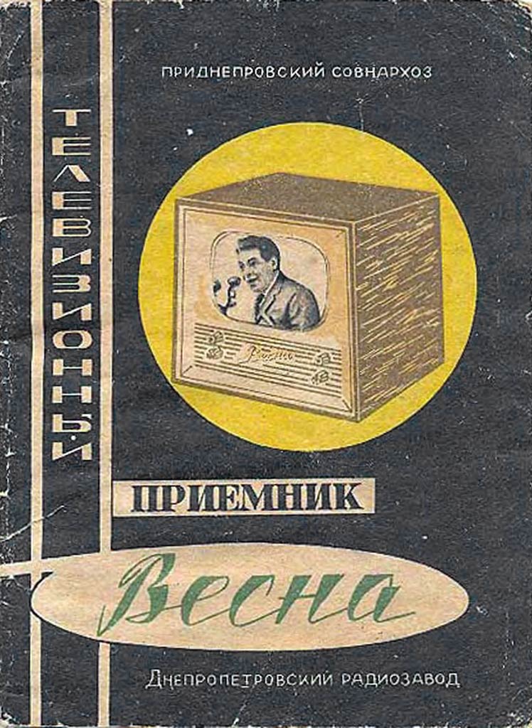 Телевизионный приёмник чёрно-белого изображения *Весна* с 1960 года выпускал Днепропетровский радиозавод. Телевизор 3-го класса **Весна** по схеме и конструкции, кроме внешнего оформления аналогичен модели **Знамя-58**, но выполнен на кинескопе 35ЛК2Б. Футляр деревянный полированный, размерами 445х440х420 мм. Вес модели 23 кг. Передняя панель телевизора пластмассовая. Здесь впервые для защиты экрана кинескопа применено выпуклое защитное 5 мм стекло. Монтаж элементов сделан на горизонтальном металлическом шасси. Ручки управления выведены на лицевую панель. Работает телевизор в любом из 12-ти каналов и в ЧМ диапазоне. В схеме телевизора применено 15 радиоламп и 7 диодов. Чувствительность 275 мкВ. Чёткость по горизонтали 400, вертикали 450 линий. Потребляемая мощность 140 Вт, при работе ЧМ 65 Вт. Телевизор **Весна-М** выпускаемый с 1962 года по схеме и оформлению мало чем отличается от предыдущего, но конструктивно не имеет приём в ЧМ диапазоне. Размер изображения 220х290 мм. Чувствительность телевизора повышена до 200 мкВ. Громкоговоритель 1ГД9 расположен фронтально. Имеются гнёзда для подключения наушников, гнёзда могут использованы для подключения магнитофона при записи звукового сопровождения. В телевизоре применена АРУ и ручная регулировка чёткости. Этот регулятор позволяет избавиться от искажений, которые могут зависеть не только от телевизора или условий приёма, но также и от дефектов передающего тракта. Футляр у модели выполнен из дерева полирован и имитирует ценные породы. Основные ручки управления выведены на переднюю панель. Ручка для ПТК, гетеродина и тембра ВЧ расположены в нише справа футляра, а другие ручки, гнёзда для антенны и наушников расположены сзади шасси. Телевизоров **Весна-М** было выпущено 10,7 тысяч штук, продавались они в основном в Украине. Цена телевизора 210 рублей.