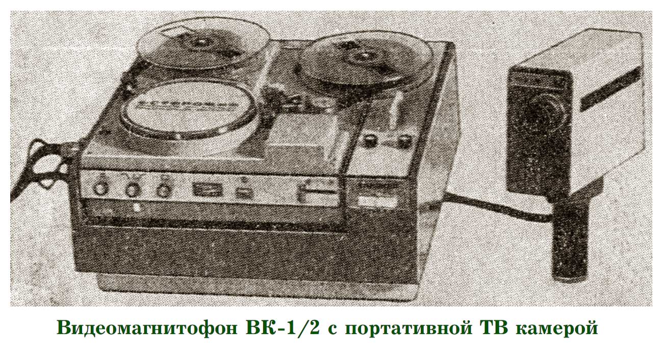 Видеомагнитофон *ВК-1/2* (ВМ Ломо) выпускался с 1971 года Ленинградским объединением *Ломо*. ВМ предназначен для записи теле или видеопрограмм со звуковым сопровождением на полудюймовую ленту в катушках. ВМ выпускали в трёх комплектациях: С телевизором *Юность-2*, с телевизором *Юность-2* и видеокамерой *Взор*, с телевизором *Юность-2*, видеокамерой *Взор* и батареей аккумуляторов. Видеомагнитофон имеет снимаемый узел записи, который используется как портативный видеомагнитофон, питающийся от батареи аккумуляторов. ВМ можно использовать для записи звука на магнитной ленте 6,25 мм. В видеомагнитофоне применяется наклонно-строчный способ записи с записью на одной дорожке полного телевизионного поля. Количество видеоголовок - 2. Разрешение записи - 200 линий. Отношение сигнал/шум не хуже 37 дБ. Полоса рабочих частот канала звука - 63...10000 Гц. Отношение сигнал/шум - не хуже 38 дБ. Скорость движения ленты 9,53 см/сек. Длительность непрерывной записи/воспроизведения: на большой катушке 90 мин, маленькой 35 мин. Длительность непрерывной записи/воспроизведения звука на ленту 6,25 мм - 2х45 мин. Время перемотки бобины максимальной ёмкости - 5 мин. Выпушено около 8 тысяч ВМ.
