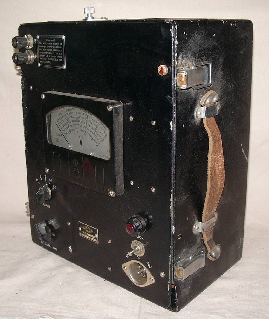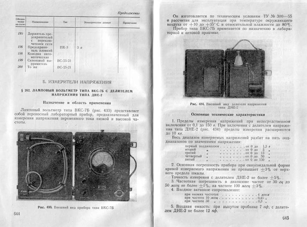 Вольтметр катодный (ламповый) *ВКС-7б* выпускался с 1948 года Горьковским заводом им. Фрунзе и Минским радиозаводом. По оформлению приборы разных заводов несколько отличаются. Вольтметр предназначен для измерения напряжения переменного тока с частотой от 20 Гц до 100мГц. Пределы измерений от 0,1 до 150 В на пяти шкалах: 0-1.5; 0-5; 0-15; 0-50 и 0-150 В. Погрешность прибора 3% от полного значения шкалы на 5 шкалах при синусоидальном напряжении. Точность измерения с делителем ДНЕ-2 не более +/-5%. Частотная погрешность в диапазоне частот от 30 Гц до 50 мГц не более +/-1%, на частоте 100мГц не более +/-3%. Входное активное сопротивление: при нижних частотах 4 мОм; при частоте 10 мГц 450 кОм; при частоте 50 мГц 300 кОм. Размеры прибора 200х285х340 мм. Вес 11 кг.