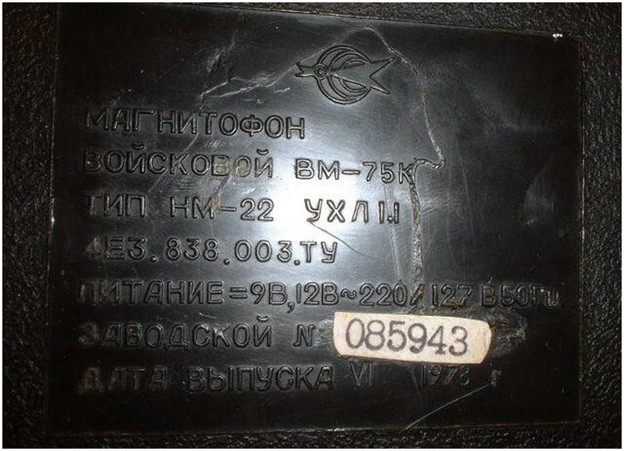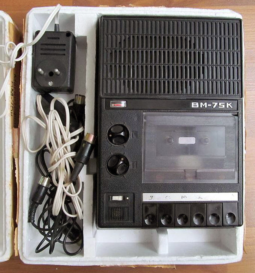 Портативный войсковой кассетный магнитофон *ВМ-75К* с 1978 года выпускал Арзамасский ПСЗ имени 50-летия СССР. Магнитофон **ВМ-75К** (буква К кассетный) предназначен для записи и воспроизведения речи и музыки с применением кассет МК. Магнитофон обеспечивает: запись от микрофона, звукоснимателя, радиолинии, приёмника, перезапись с других магнитофонов, стирание записи, воспроизведение записи через ЛВ, воспроизведение записи через внутренний громкоговоритель или головные телефоны, ускоренную перемотку ленты в обоих направлениях, работу на ходу. Питание от элементов 343, сети, внешнего аккумулятора. Скорость ленты 4,76 и 2,38 см/с. Диапазон рабочих частот 63...10000 Гц. Габариты магнитофона - 265х175х85 мм. Масса 2,5 кг. Магнитофоны выпускались со стрелочным индикатором, ручной регулировкой уровня записи и контролем питания и без индикатора, с системой АРУЗ.