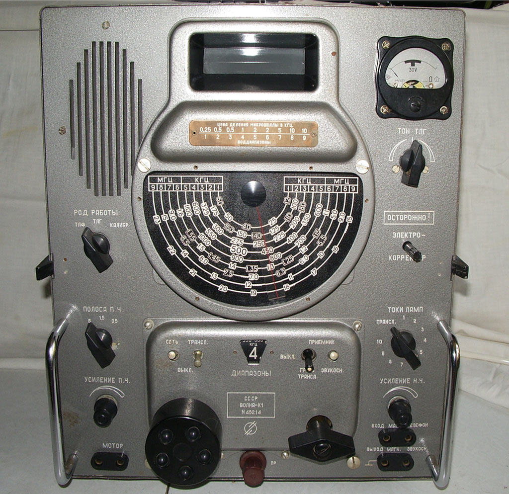 Всеволновый связной радиоприёмник *Волна-К* (плюс варианты) выпускал с 1959 по 1985 год Петропавловский радиозавод имени С.М.Кирова. **Волна-К** - специальный телефонно-телеграфный радиоприёмник для осуществления радиосвязи на судах каботажного и дальнего плавания и в качестве вспомогательного приёмника в ВМФ. Приёмник имеет 16 радиоламп и работает в 9 подиапазонах, перекрывая частоты от 12 КГц до 23 МГц. Приёмник имеет контрольный громкоговоритель, гнёзда головных телефонов. Применено двойное преобразование частоты и ступенчатое изменение полосы пропускания второй ПЧ 0,5, 1,5 и 6 КГц. Чувствительность радиоприёмника зависит от диапазонов и лежит в пределах от 3 до 10 мкВ. Питание от электрической сети переменного тока или от постоянного тока через преобразователь *ОП-120*. Габариты приёмника 350х410х420 мм. Вес 36 кг. Существовало шесть вариантов приёмника: Волна-К, Волна-КТ - тропический, Волна-К1, Волна-К1 - тропический, *Волна-К2 (корпус приемника выполнен из алюминиевого сплава) и Волна-3*. Радиоприёмники в 6-ти вариантах отличались пропусками частот между диапазонами, суженными диапазонами, наличием или отсутствием различных сервисных функций. Более подробная информация о вариантах радиоприёмников *Волна-К* имеется в интернете.