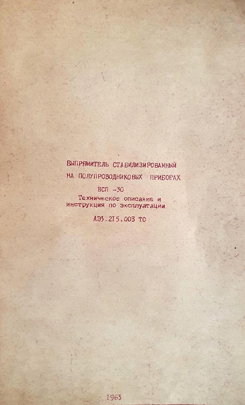 Выпрямитель стабилизированный на полупроводниковых приборах **ВСП-30** был разработан в 1963 году, а выпускался серийно с 1964 года Запорожским автотрансформаторным заводом. Выпрямитель **ВСП-30** предназначен для питания стабилизированным напряжением радиоаппаратуры в процессе её производства, настройки и эксплуатации. Выходное напряжение имеет грубую и плавную регулировку в пределах от 0 до 30 вольт, при токе в нагрузке до 3 ампер. Имеется индикатор перегрузки по току.