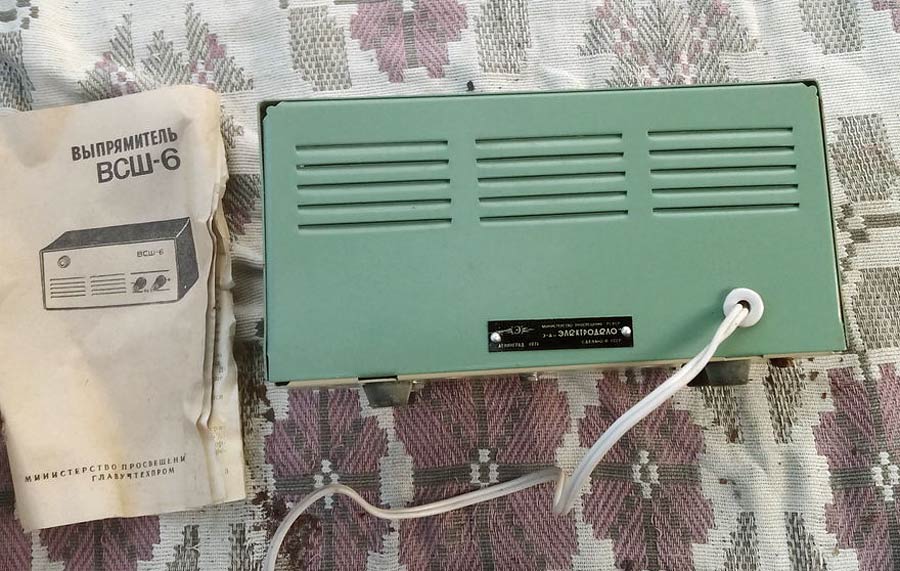 Выпрямитель селеновый школьный *ВСШ-6* выпускался предположительно с 1965 года Ленинградским заводом *Электродело*. Позволяет получить на выходе постоянное отфильтрованное напряжение 6 В при максимальном токе нагрузке до 2 А. ПВыпрямитель педназначен для опытов по химии и физике в школах и других общеобразовательных учереждениях. Выпрямитель *ВСШ-6* выпускался достаточно длительное время и его оформление несколько раз изменялось.
