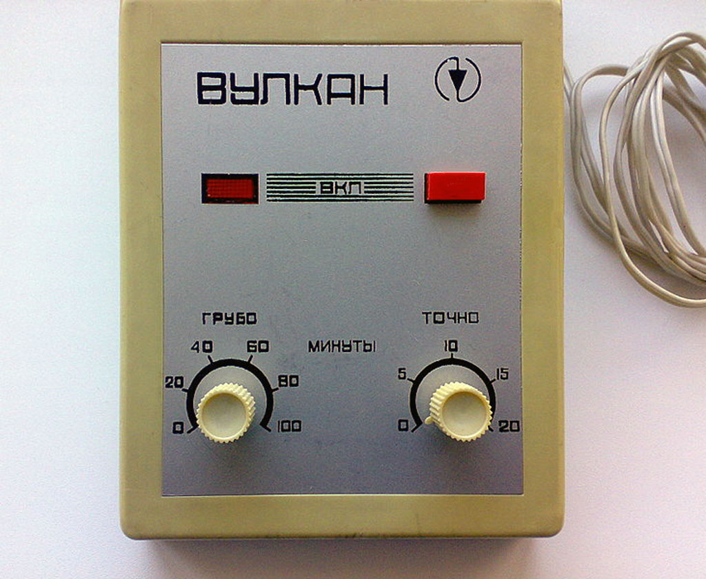 Реле времени для фотопечати *Вулкан* выпускался предположительно с 1976 года. Изготовитель пока не установлен. Диапазон выдержек 1...100 мин.