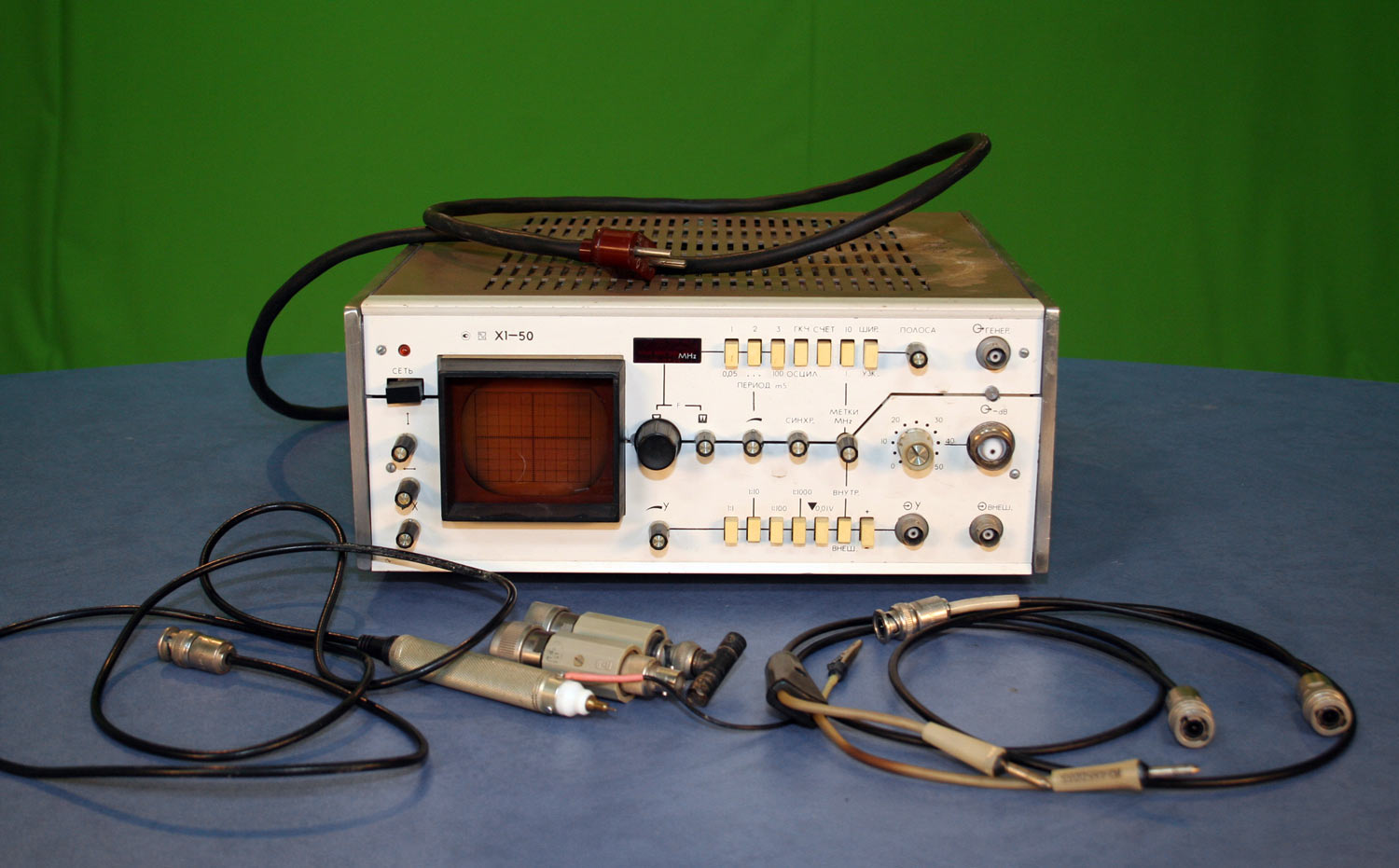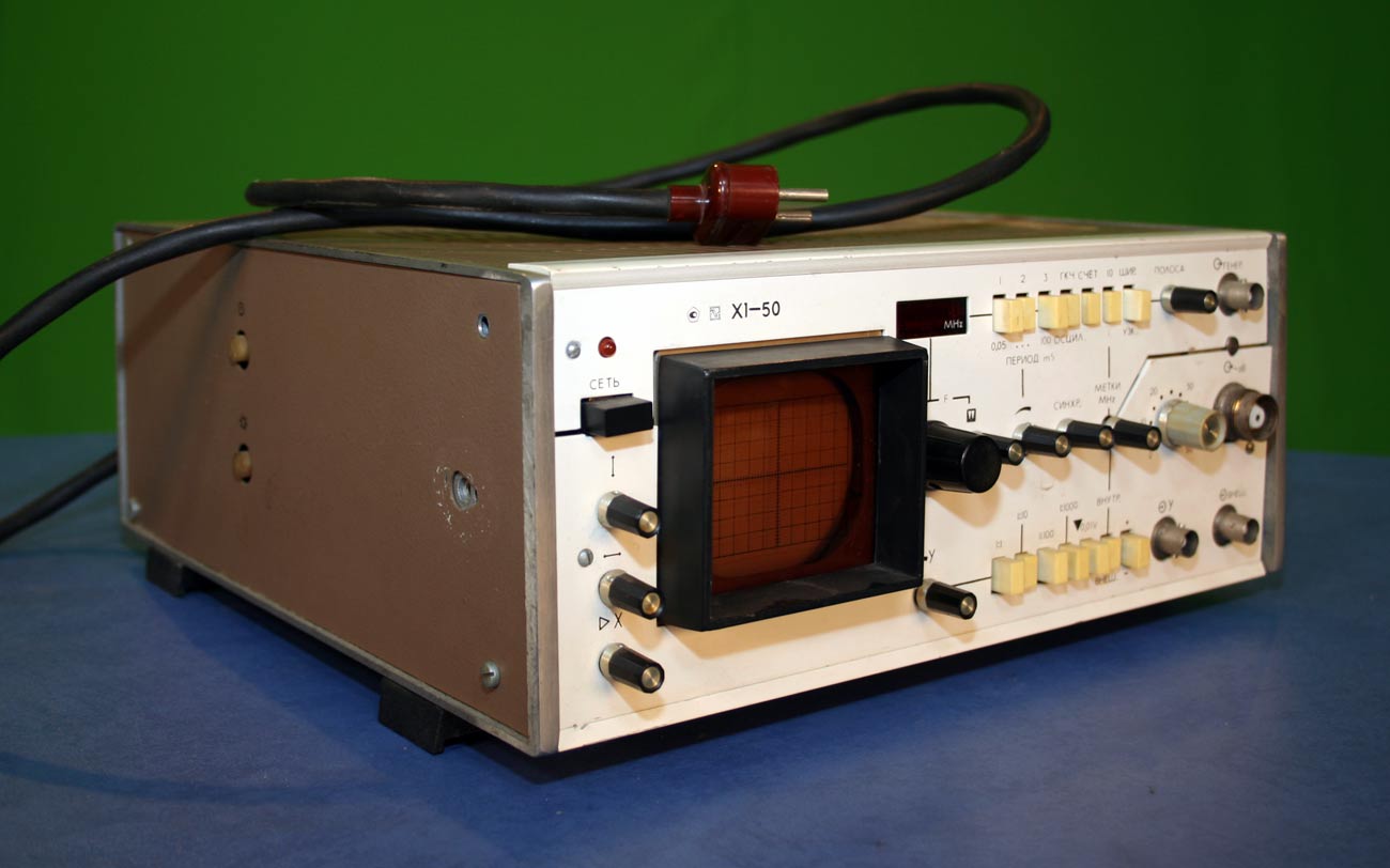Измеритель АЧХ *Х1-50* выпускался с 1985 года Курским заводом *Маяк*. Предназначен для исследования и настройки АЧХ ВЧ и СВЧ узлов с воспроизведением АЧХ на экране ЭЛТ. *Х1-50* заменяет прибор *Х1-7Б* и обладает рядом преимуществ в сравнении с ним: перекрывает весь диапазон частот до 100МГц, имеет широкополосный режим качания, выходное напряжение ГКЧ во всем рабочем диапазоне частот 100мВ, высокую чувствительность канала вертикального отклонения. Диапазон частот, МГц 0.36-436;4 34-636; 636-1002. Полоса качания частоты (МГц): В узкополосном режиме 0,5, в широкополосном режиме 20. Частотные метки Через 1 и 10 МГц. Выходное напряжение ГКЧ, мВ 100. Пределы изменения выходного напряжения, дБ 0-50. Потребляемая мощность, ВА 70. Габариты, мм 308х304х133. Масса, кг 8.5.