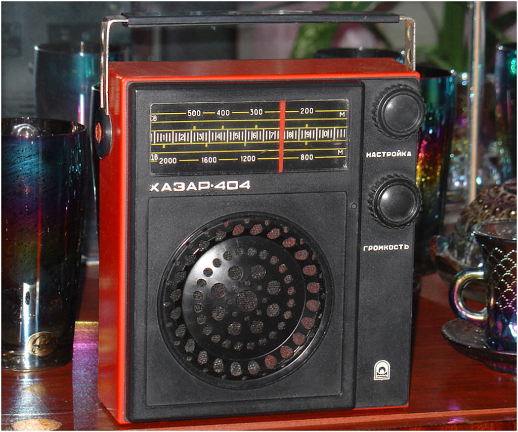 Портативные радиоприёмники *Хазар-404* и *Хазар-304* соответственно с 1984 и 1986 года выпускал Бакинский радиозавод. Радиоприёмники, кроме наименования и оформления шкалы - одинаковы и повышение класса обусловлено повышением заинтересованности потенциальных покупателей. Любой из радиоприёмников предназначен для приёма радиовещательных станций в диапазоне ДВ, СВ на внутреннюю магнитную антенну. Питание осуществляется от шести элементов А-343 или двух батарей 3336Л. Имеется возможность для подключения внешней антенны, головных телефонов и внешнего источника питания. Основные характеристики: чувствительность в диапазоне ДВ - 2, СВ - 1,5 мВ/м; селективность по соседнему каналу - 30 дБ; номинальная выходная мощность не менее 300, максимальная 500 мВт; номинальный диапазон воспроизводимых звуковых частот 250...3550 Гц; мощность, потребляемая от батареи питания 0,8 Вт. Габариты любого радиоприёмника - 182 х 200 х 73 мм. Масса без источников питания 0,9 кг.