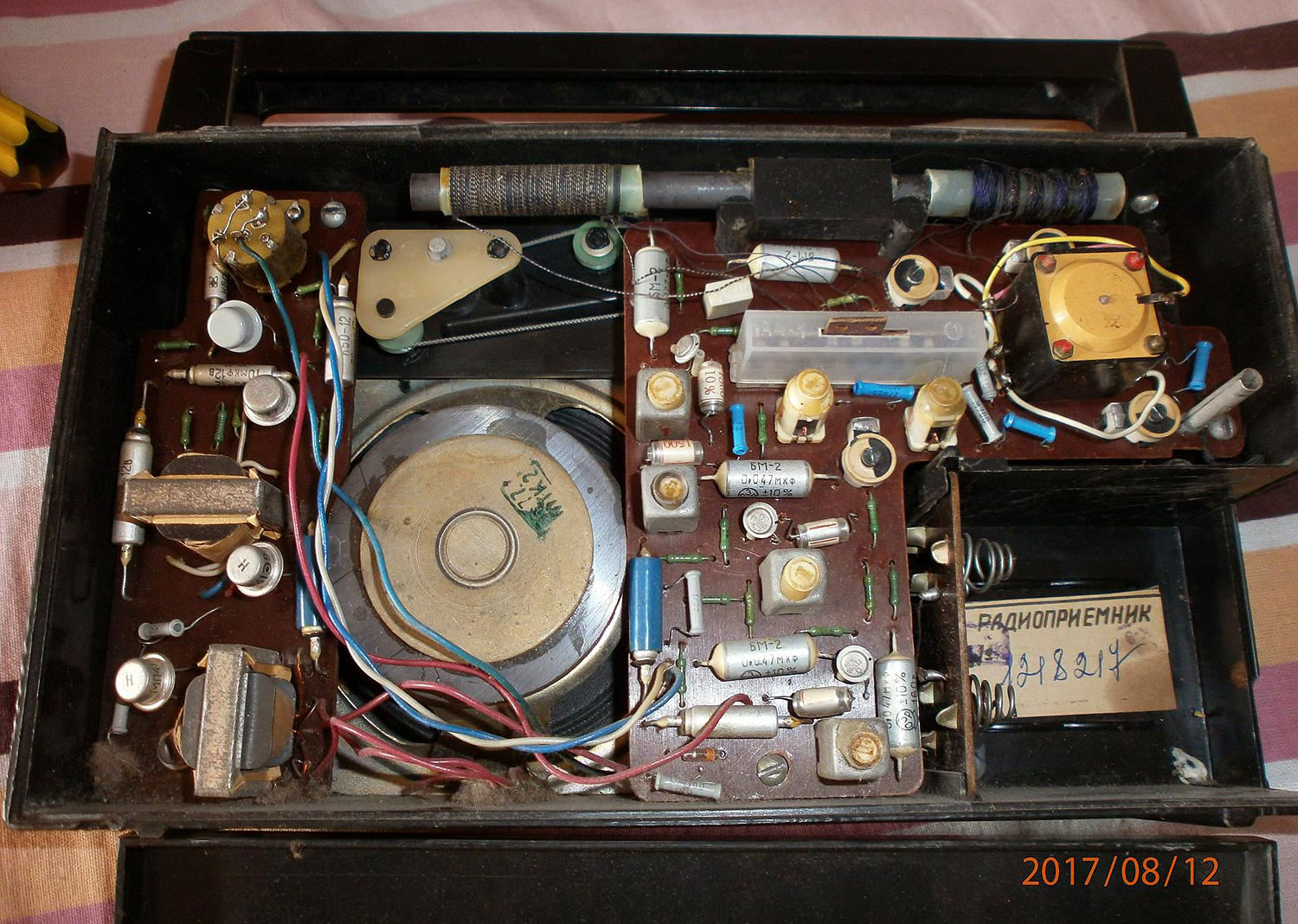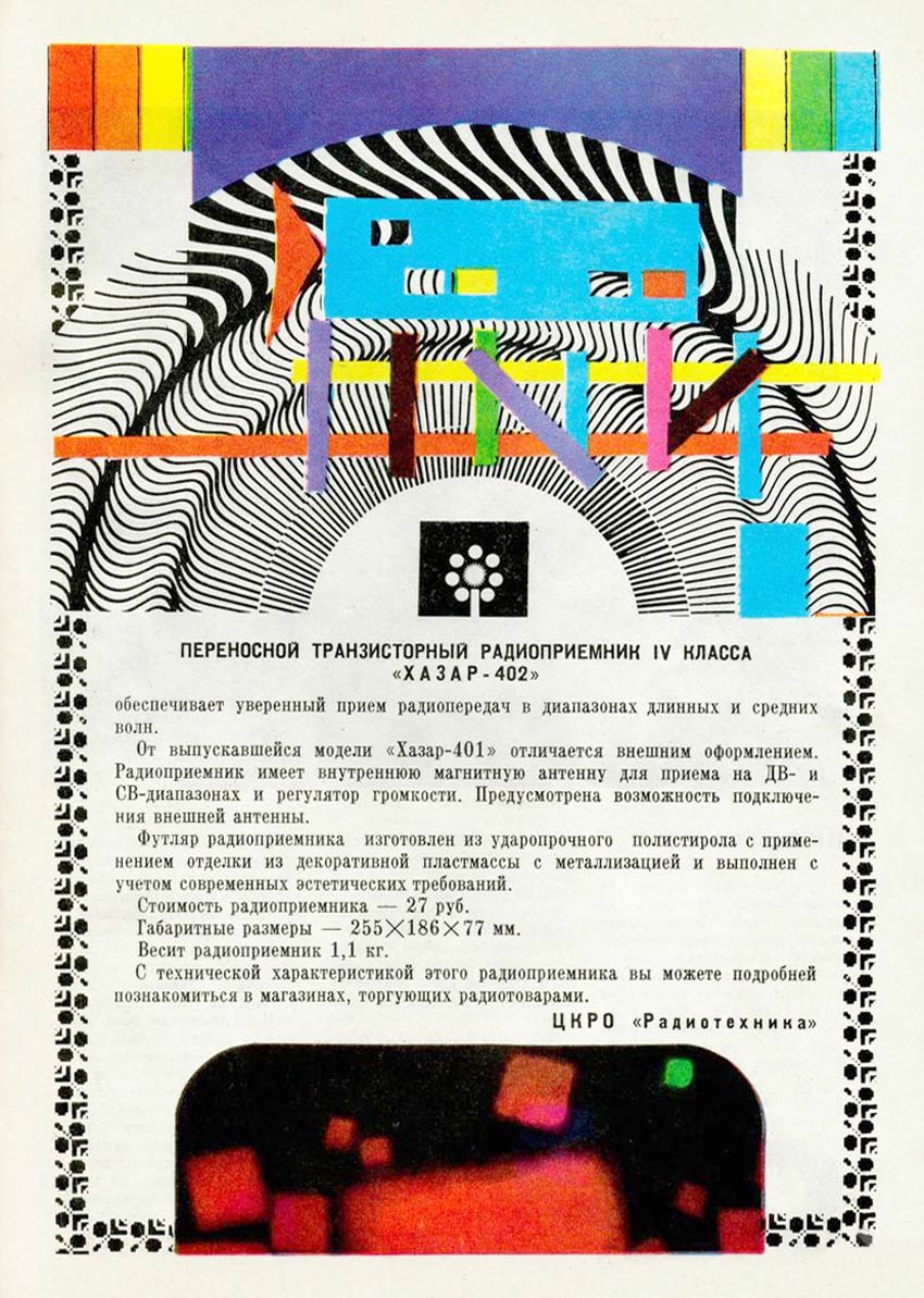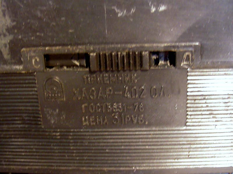 Портативный радиоприёмник *Хазар-402* с 1975 года выпускал Бакинский радиозавод. **Хазар-402** (в переводе с азербайджанского языка - Каспий. Каспийское море) - радиоприёмник 4-го класса супергетеродинного типа, предназначенный для приёма радиовещательных станций в диапазонах СВ и ДВ. Чувствительность 0,8 мВ в СВ и 1,5 мВ/м в ДВ диапазоне. Селективность по соседнему каналу 20 дБ. Номинальная выходная мощность 150 мВт, максимальная 250 мВт. Диапазон воспроизводимых звуковых частот 315...3550 Гц. Питание от двух батарей 3336Л. По электрической схеме, конструкции и параметрам приёмник схож с моделью **Хазар-401**, использован лишь его немного изменённый футляр. Цена радиоприёмника 29 рублей. Радиоприёмник с Олимпийской символикой стоил 31 рубль. Радиоприёмник планировали выпускать в чехле из кожзаменителя, но не выпускали. В некоторых партиях радиоприёмников *Хазар-402* экспериментально применяли усилители НЧ на микросхеме К174УН4Б (10-е фото).