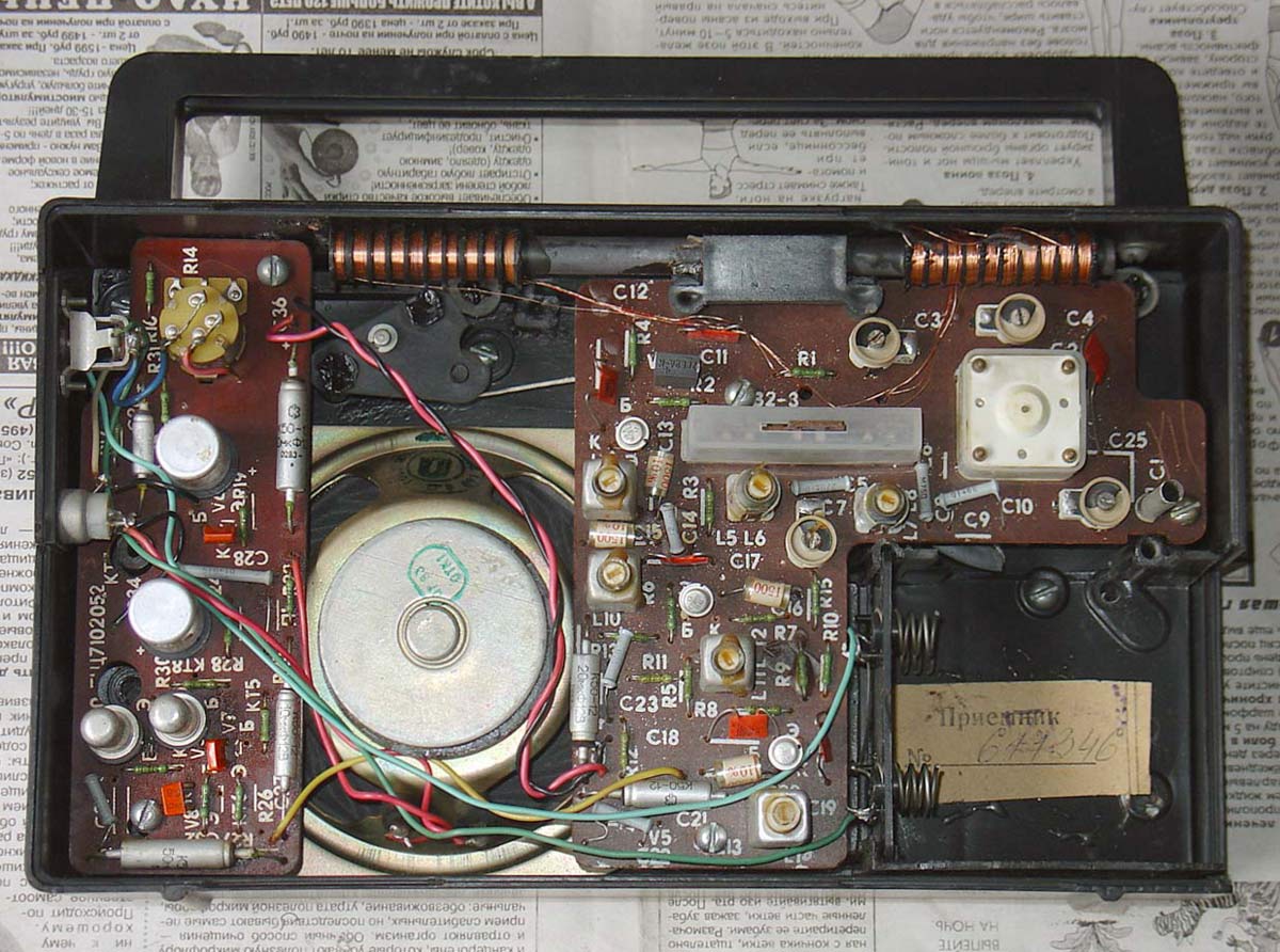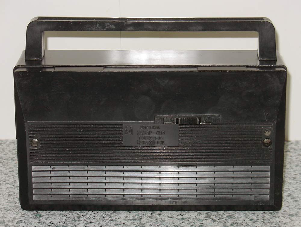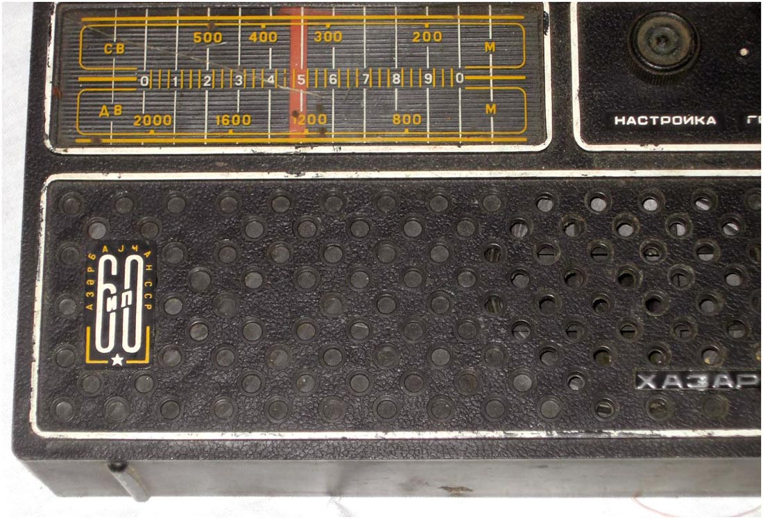 Портативный транзисторный радиоприёмник 4 класса *Хазар-403* с 1980 года выпускал Бакинский радиозавод. Год выпуска радиоприёмника **Хазар-403** был отмечен сразу двумя знаменательными событиями. В этом году в Москве состоялась **Олимпиада-80** и исполнилось 60 лет Азербайджанской ССР в столице которой, Баку и выпускали радиоприёмник **Хазар** (в переводе с азербайджанского яз. Каспий). Юбилейный приёмник был разработан по конструкции и оформлении отличающийся от обычного радиоприёминка, фотографии этого юбилейного варианта смотрите на фотографиях 4, 7, 9 и 10. Олимпийское оформление есть в справочнике И.Ф.Белова. С 1981 года приёмник выпускали в обычном оформлении. Радиоприёмник **Хазар-403** это переносной супергетеродин, собранный на восьми транзисторах и двух диодах. Радиоприёмник работает в диапазонах ДВ и СВ. Его чувствительность в диапазонах: ДВ 1,5 мВ/м, СВ 0,8 мВ/м. Избирательность по соседнему каналу 20 дБ. Номинальная выходная мощность 300 мВт, максимальная 600 мВт. Полоса воспроизводимых звуковых частот 250...3550 Гц. Питание от двух батарей 3336Л. Габариты радиоприёмника 256х187х83 мм. Вес 1,1 кг. На втором фото первоначальный опытный образец радиоприёмника.