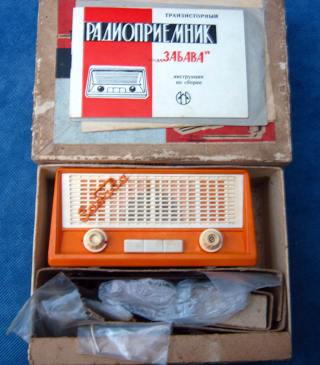 Радиоприёмник *Забава* (из радиоконструктора) с 1965 года выпускал Куйбышевский приборостроительный завод. Приёмник на 5 транзисторах и работает в диапазоне СВ. Приём осуществляется на магнитную или внешнюю антенны. Чувствительность - 20 мВ/м. Селективность - 6...8 дБ. Номинальная выходная мощность 60 мВт, максимальная 100 мВт. Диапазон воспроизводимых частот 450...3000 Гц. Питание