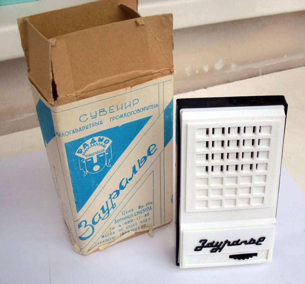 Абонентский сувенирный громкоговоритель "Зауралье" возможно с 1989 года выпускало ОАО "Шадринский телефонный завод". АГ "Зауралье" предназначен для работы в трансляционных сетях с напряжением 30 В. Диапазон звуковых частот 200...4000 Гц. Габариты АГ 180х65х23 мм. Вес 340 гр. Цена 8 руб. 10 коп.